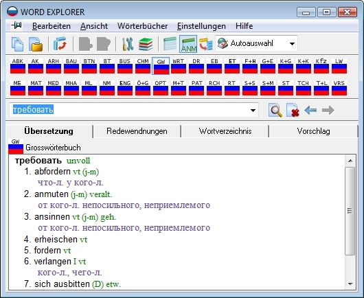 Ca. 1.100.000 Wörter und Wendungen aus allen Bereichen der Sprachlexik und der Phraseologie: