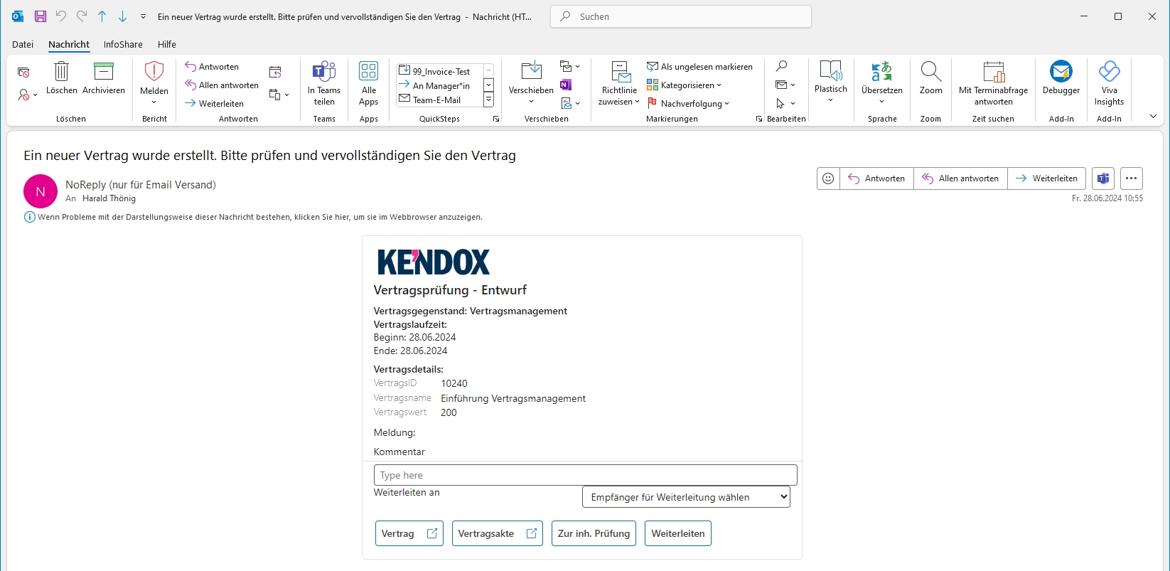 Ja. Kendox InfoShare bietet eine offene REST/JSON-API mit umfangreichem Funktionsumfang und ermöglicht so eine nahtlose Integration in bestehende Systeme wie ERP-, CRM- oder Fachanwendungen. Zusätzlich gibt es tiefe Integrationen in Microsoft 365, u. a. mit:
