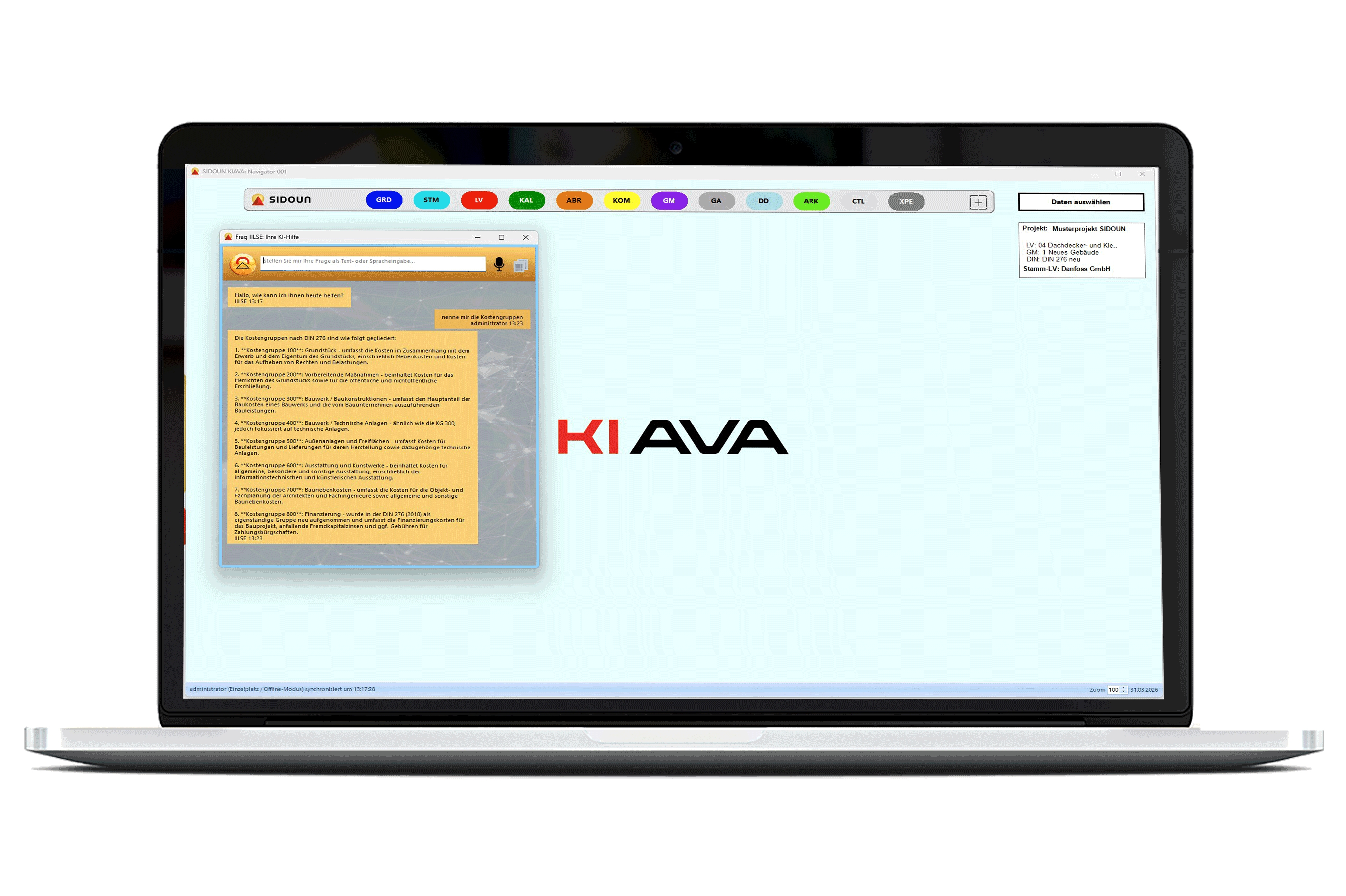 Mit KIAVA bietet die SIDOUN International GmbH die erste AVA-Software mit integrierter KI. Intelligente Assistenzfunktionen unterstützen Anwender direkt im Arbeitsprozess und erleichtern zahlreiche Aufgaben der Projektbearbeitung – von der Kostenermittlung über die Erstellung von Leistungsverzeichnissen bis zur Bauabrechnung.