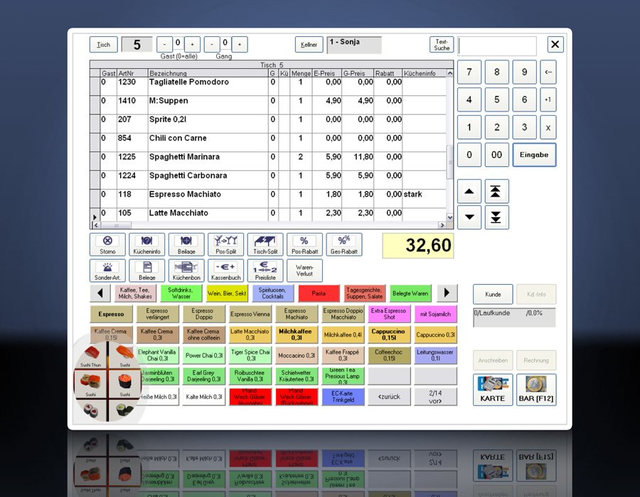 Die Software kann u.a. mit Touch-Screen-Bedienung und zur Abwicklung von Kartenzahlungen nachgerüstet werden (dabei ist kein extra Terminal nötig).