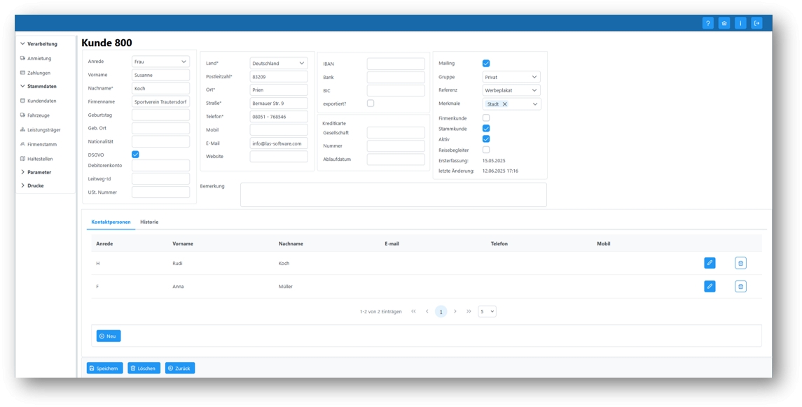 Software für den Anmietverkehr bzw. Gelegenheitsverkehr mit Verwaltung von Fahrer- und Fahrzeugstamm, Kunden und Leistungsträger, Angebote, Fahraufträge und Rechnungen, Kalkulation und Akquisition.