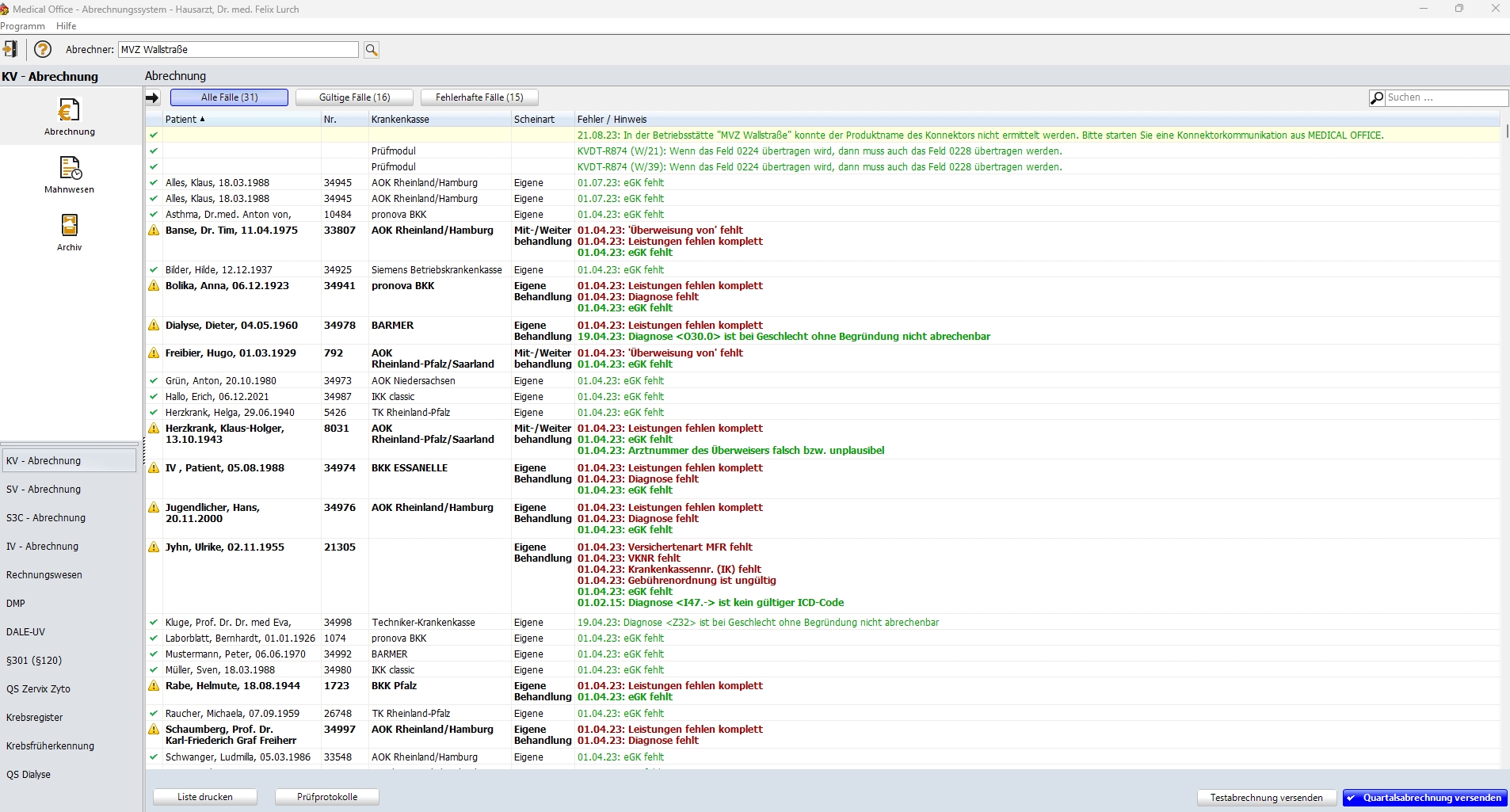 KV-, Privat- und BG-Abrechnung – rechtssicher, automatisiert und komfortabel; inkl. Selektivverträge und IV-Versorgung sowie Abrechnung ambulanten Operierens für MVZs und Ambulanzen.