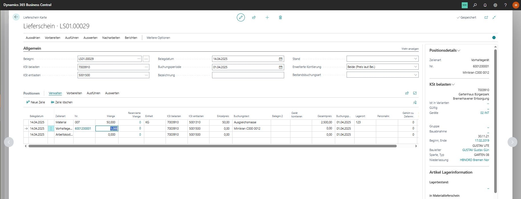 Gerätemanagement: Detaillierte Erfassung und Abrechnung des gesamten Maschinen- und Fuhrparks, inklusive Instandhaltung und Kostenzuordnung