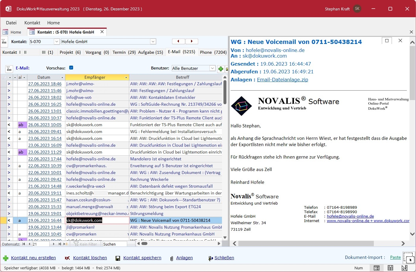 NOVALIS®DokuWork (CRM und Dokumenten-Management-Systems):