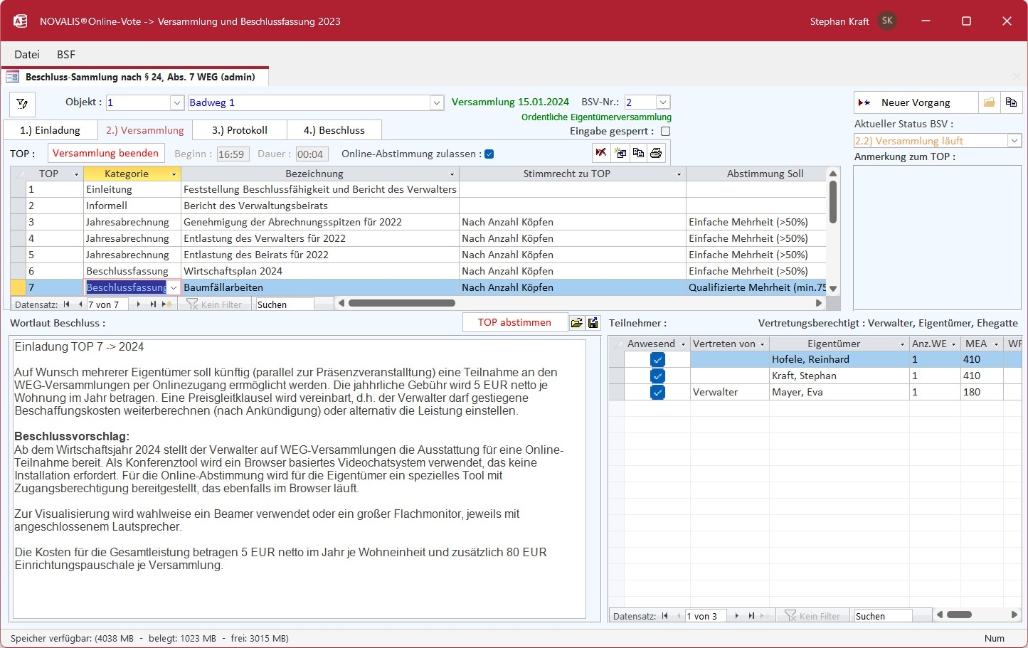 NOVALIS®Online-Vote (Versammlung und Beschlussfassung):