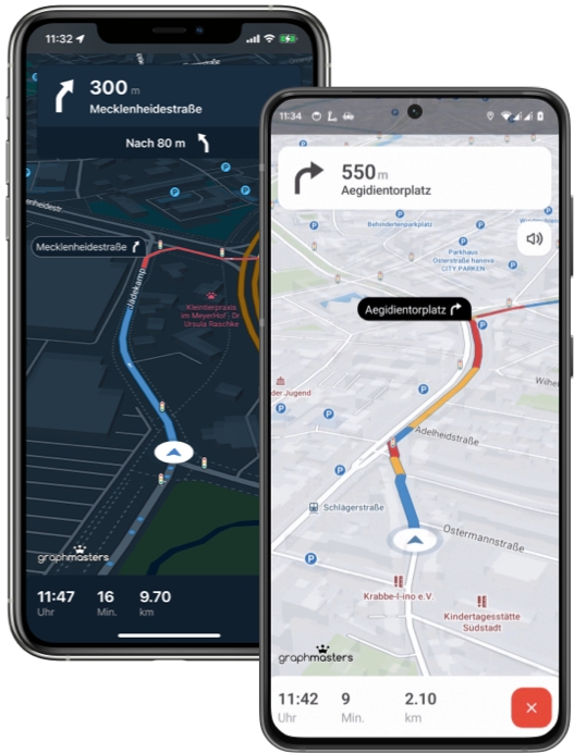 Mit der NUNAV Produktfamilie stellt Graphmasters leistungsfähige Werkzeuge bereit, die sich für verschiedenste Mobilitätsszenarien in Wirtschaft, Verwaltung und öffentlichem Verkehr eignen, von der Tourenplanung im KEP-Bereich bis hin zum intelligenten Besuchermanagement bei Großveranstaltungen.