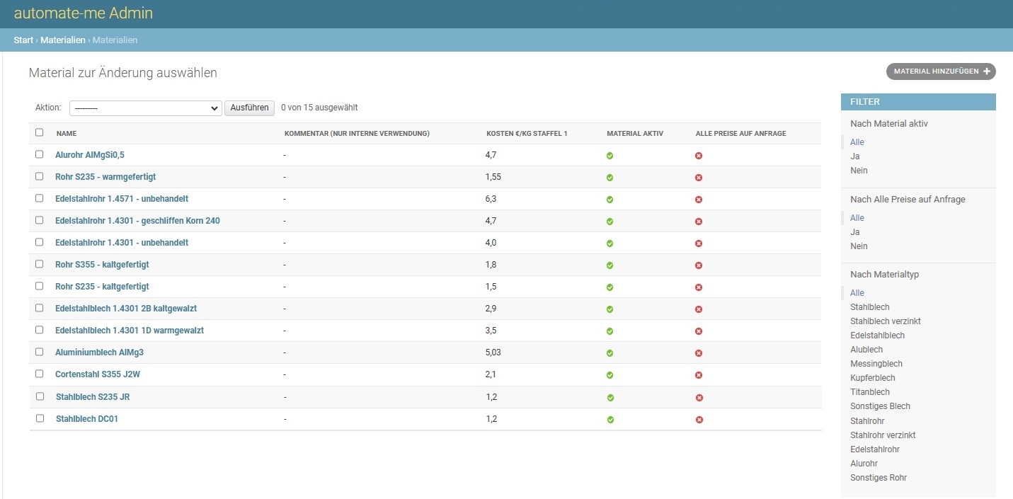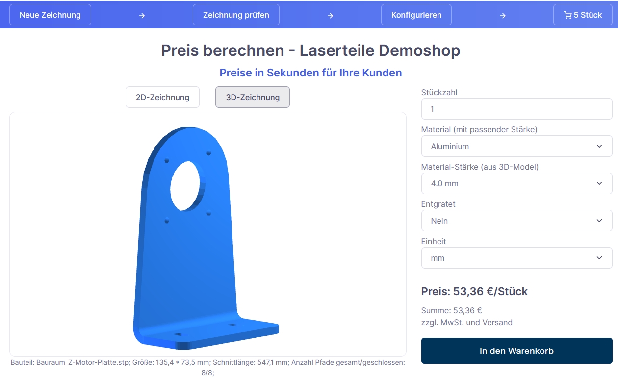 Das beste daran: die Kosten sind ein Bruchteil im Vergleich zur manuellen Angebotserstellung durch einen Vertriebsmitarbeiter. Wie soll das gehen? Dies ist unsere Onlineshop- und Kalkulationssoftware für Laserteile und Blechbiegeteile.