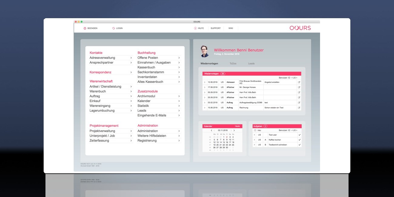 Die Warenwirtschaftssoftware OOURS sorgt für ein effizientes Arbeiten und strukturierte Abläufe in Ihrem Betrieb. Mit über 25 Jahren Erfahrung und stetiger Weiterentwicklung haben wir ein Programm geschaffen, das die Organisation Ihrer kaufmännischen Abläufe perfektioniert und Ihnen hilft, Ihren Betrieb erfolgreich zu steuern. Trotz seiner inhaltlichen Komplexität zeichnet sich OOURS durch leichte Bedienbarkeit und ein klares, übersichtliches Design aus. Ein weiterer Vorteil: Die Warenwirtschaftssoftware läuft auf dem Mac (und iOS), unter Windows sowie in gemischten Systemen.