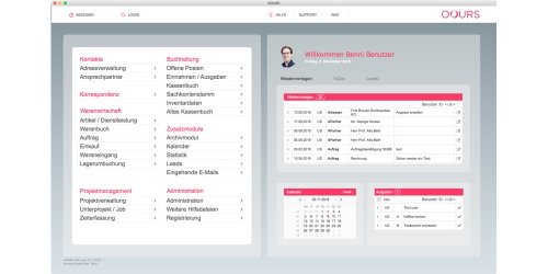 Dank des modularen Aufbaus ist die Softwarelösung in Unternehmen jeder Größenordnung einsetzbar und wächst mit den Anforderungen. Ob Verwaltung von Aufträgen, Projekten und Materialien, vielfältige Managementaufgaben, innovatives Warenwirtschaftssystem oder Schnittstellen zu anderen Software-Lösungen, OOURS ermöglicht ein schnelles, stressfreies Arbeiten und steigert Ihre Produktivität. Nutzen Sie das moderne Customer Relationship Management (CRM), um anhand der hinterlegten Informationen immer den perfekten Einstieg in das Kundengespräch zu haben.