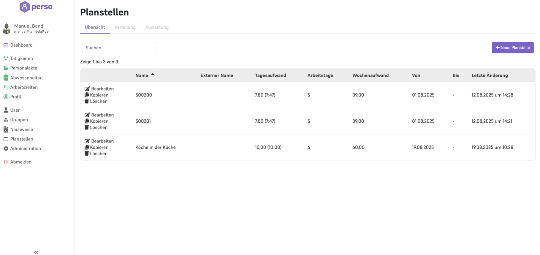 Mit perso können Planstellen flexibel verwaltet und anteilig Mitarbeitenden zugewiesen werden. So behalten Unternehmen jederzeit Transparenz über die Besetzung.