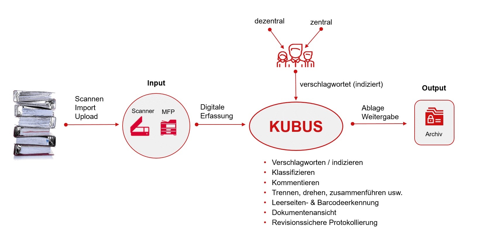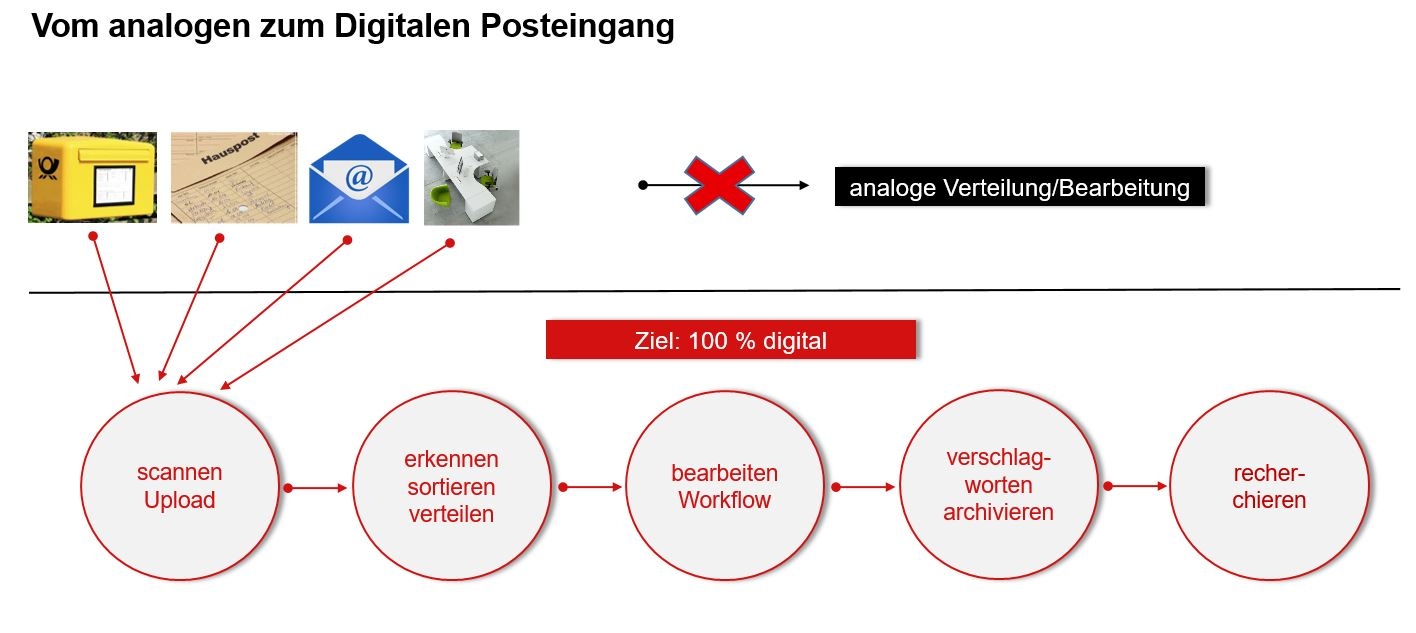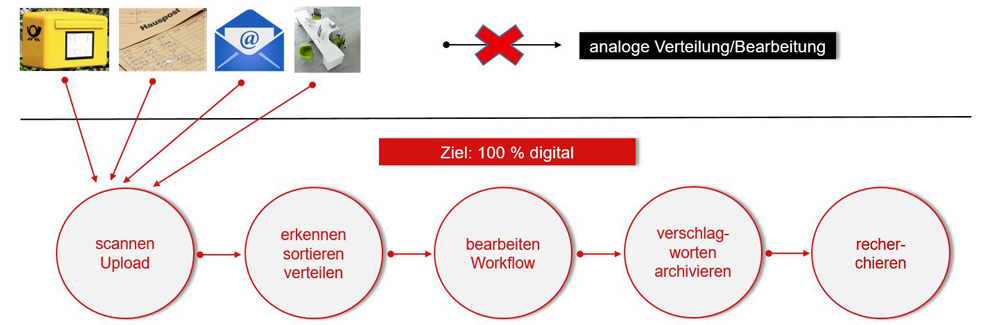 Die Grundlage für Wettbewerbsfähigkeit und langfristige Erfolge sind effiziente Prozesse. Das Zusammenführen aller Quellen ist der Schlüssel zum erfolgreichen papierlosen Arbeiten. Die Idee eines papierlosen Büros ist nicht neu! Dennoch fehlt es nach wie vor an Konzepten sowie der passenden Softwaretechnologie, um das ankommende analoge Papier, gepaart mit schon digitalen Daten in einer Datendrehscheibe, in die richtigen Workflows zu bringen.