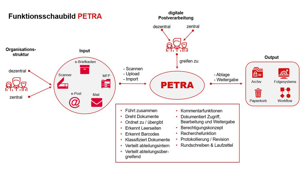 PETRA ist die all-in-one-Lösung für Ihr Inputmanagement (Dokumentenverteilung, Dokumentenbearbeitung und Dokumentenindizierung).