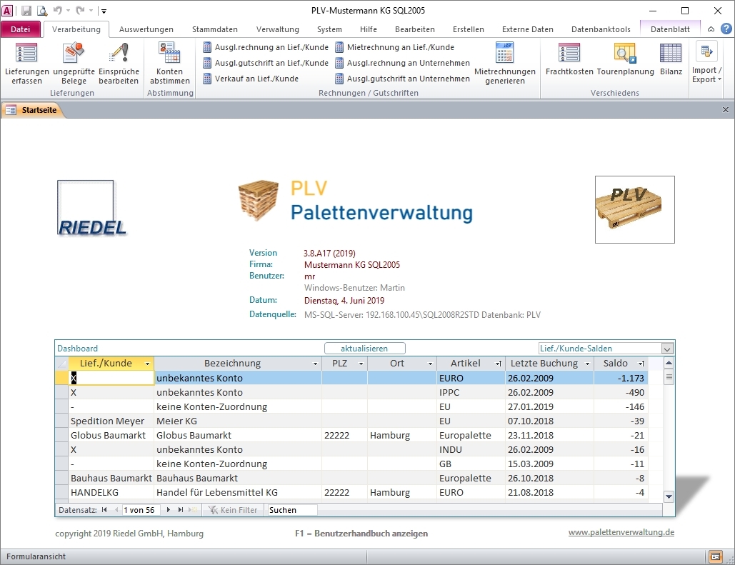 Palettenbuchhaltung, Lademittelverwaltung, Palettenkonto Software, Palettenkonto