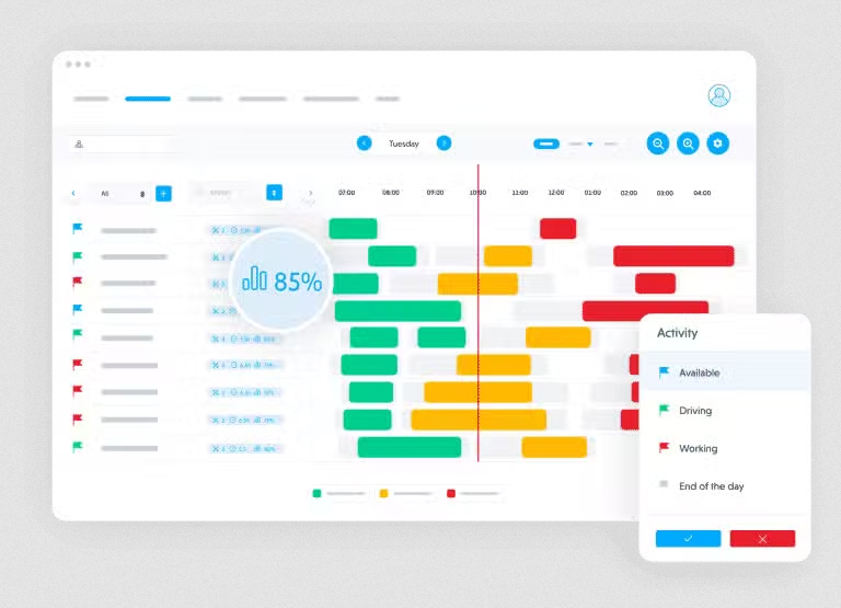 Drag-&-Drop-Disposition, Kartenplanung und Echtzeit-Verfolgung („Verfügbar/Unterwegs/Im Einsatz“)