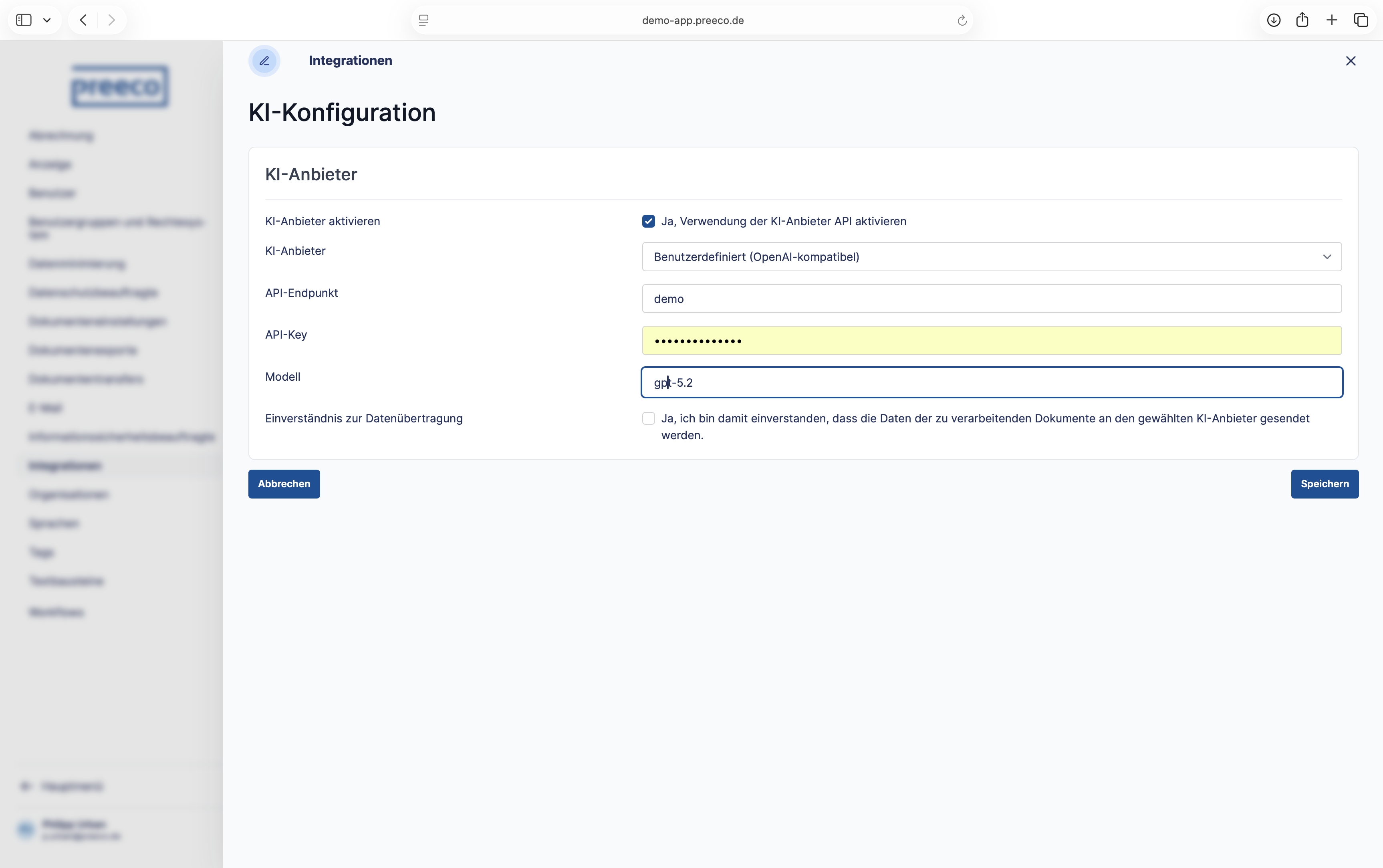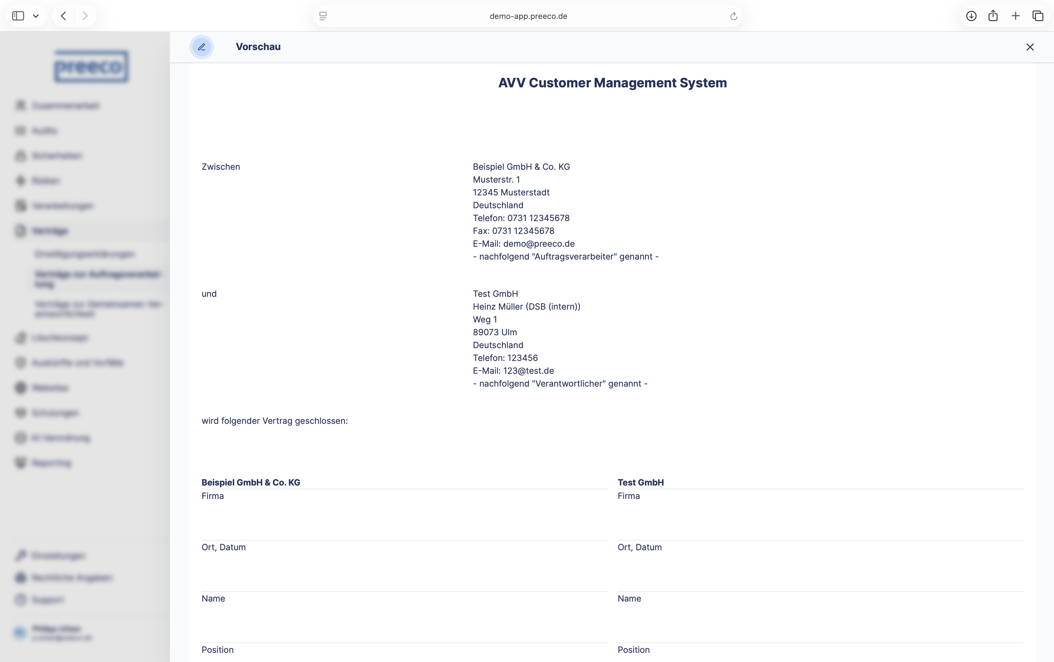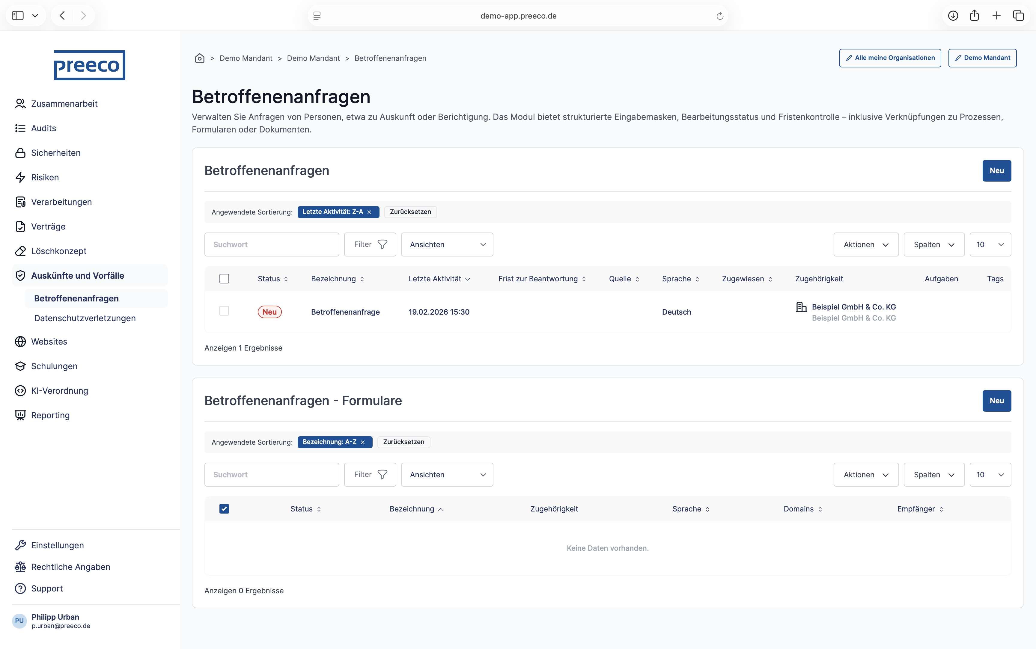 Legen Sie selbst komplexe Unternehmensstrukturen in der umfassend mandantenfähigen Software an und erleichtern Sie sich noch heute Ihre Arbeit als interne oder externe Datenschutzbeauftragte. Mit dem feingranularen Rollen- und Rechtesystem ermöglicht Ihnen preeco | datenschutz zudem die gemeinsame Dokumentation mit weiteren Benutzer:innen, egal ob intern oder extern. Des Weiteren steht Ihnen mit der Integration von DeepL® die Mehrsprachigkeit sowohl für die Bedienoberfläche als auch für Dokumente bereit. Diese können Sie automatisch in bis zu 25 verschiedene Sprachen übersetzen. Mithilfe des API-Keys Ihrer genutzten KI können Sie diese auch in preeco | datenschutz implementieren.