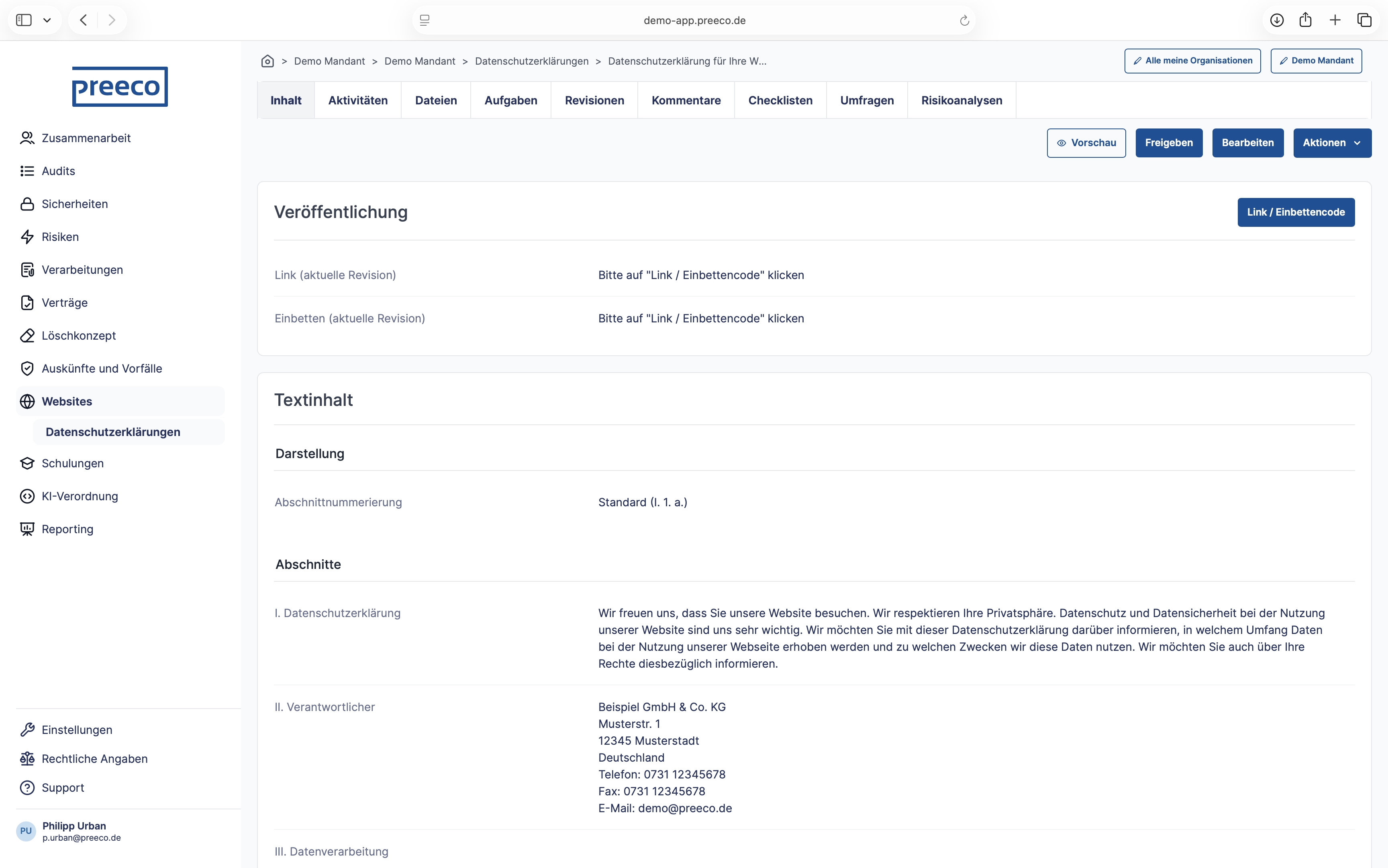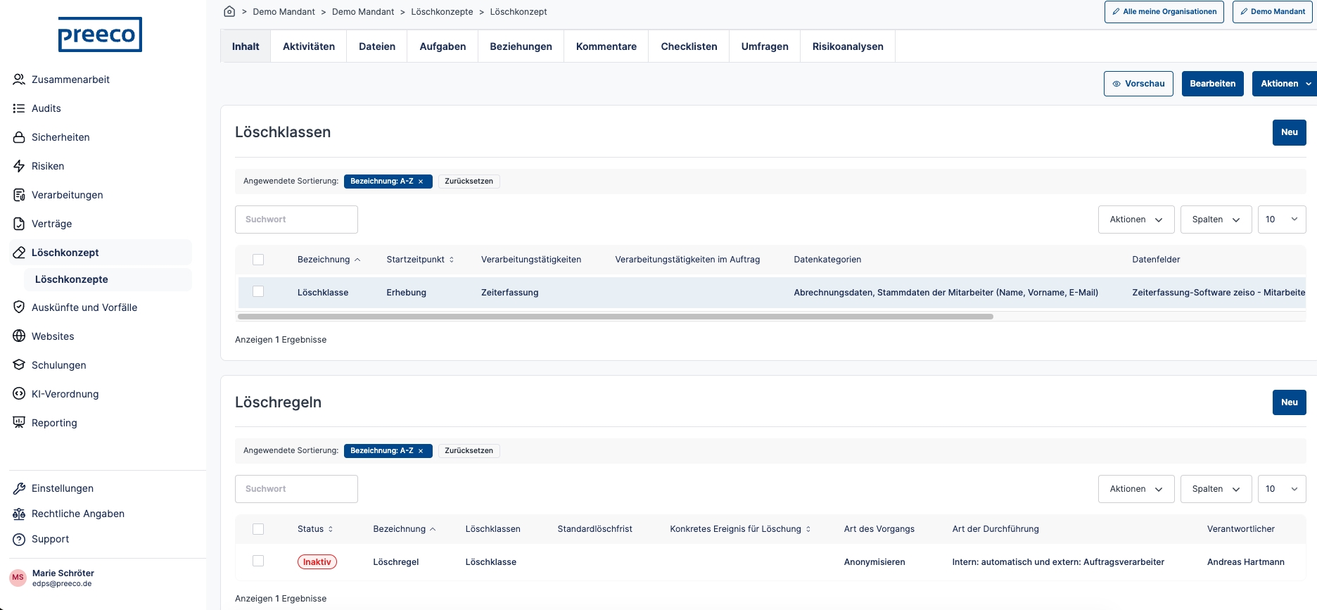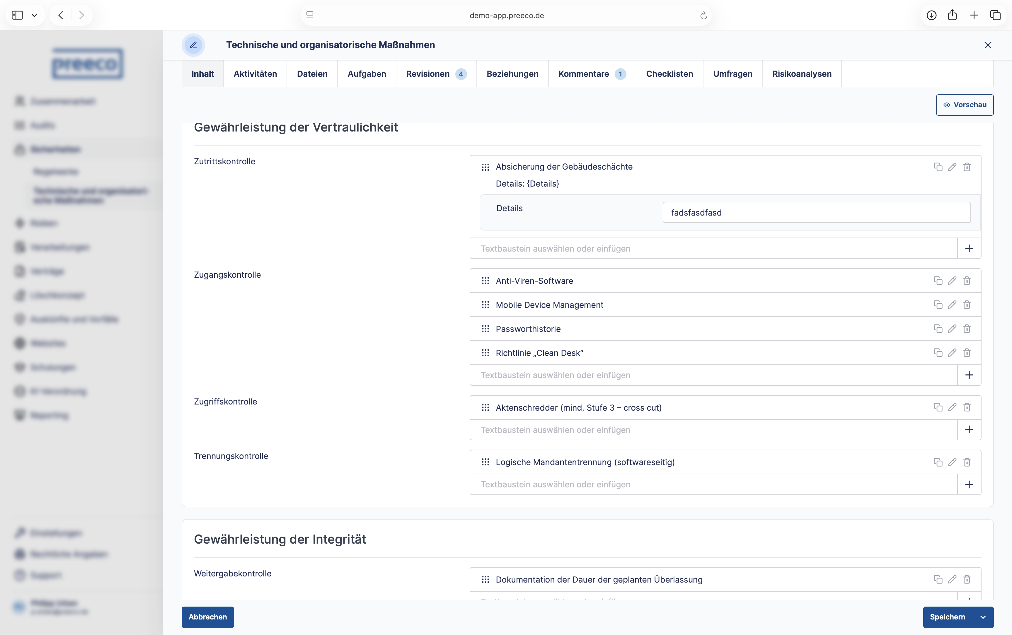 Legen Sie selbst komplexe Unternehmensstrukturen in der umfassend mandantenfähigen Software an und erleichtern Sie sich noch heute Ihre Arbeit als interne oder externe Datenschutzbeauftragte. Mit dem feingranularen Rollen- und Rechtesystem ermöglicht Ihnen preeco | datenschutz zudem die gemeinsame Dokumentation mit weiteren Benutzer:innen, egal ob intern oder extern. Des Weiteren steht Ihnen mit der Integration von DeepL® die Mehrsprachigkeit sowohl für die Bedienoberfläche als auch für Dokumente bereit. Diese können Sie automatisch in bis zu 25 verschiedene Sprachen übersetzen. Mithilfe des API-Keys Ihrer genutzten KI können Sie diese auch in preeco | datenschutz implementieren.