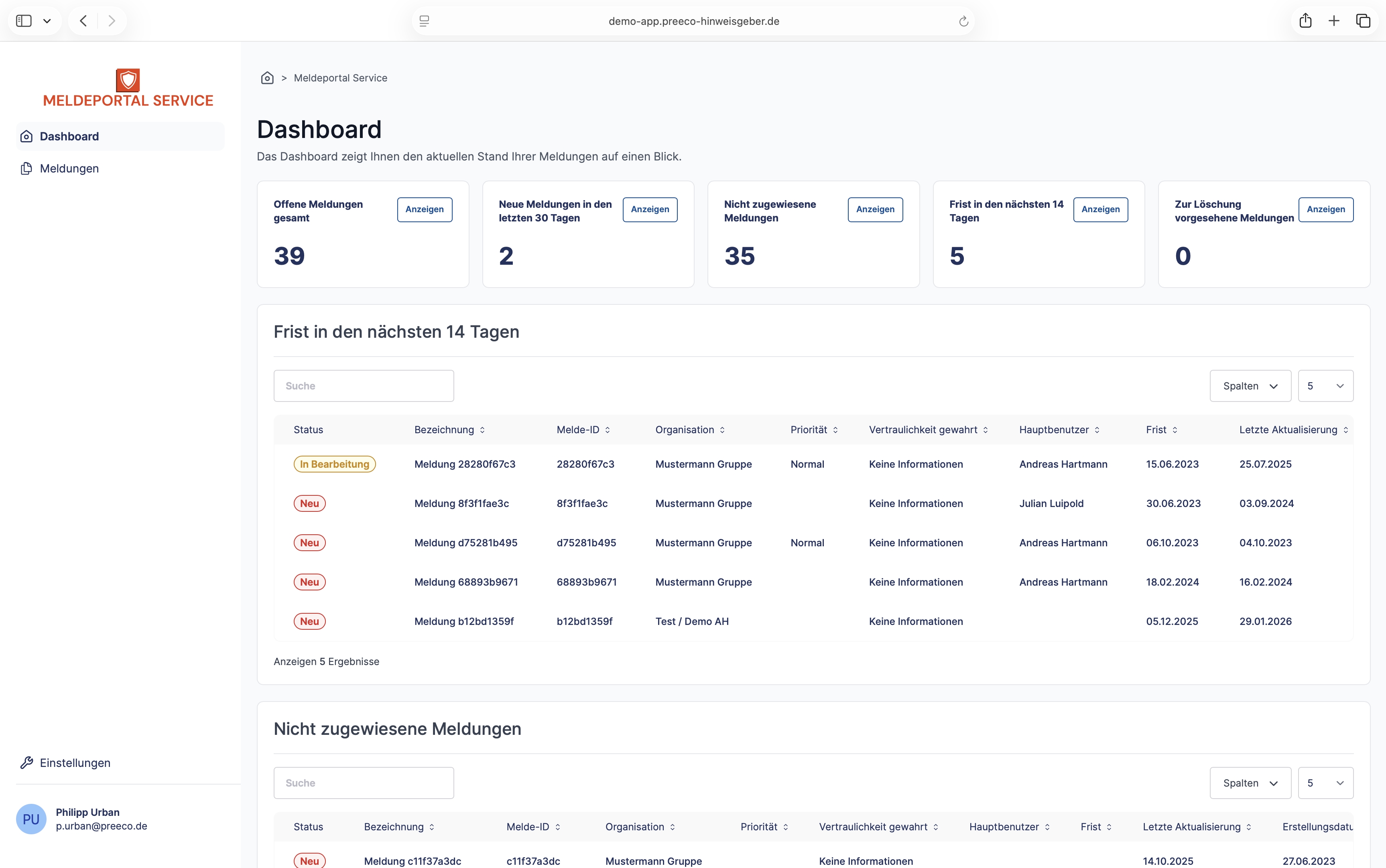 - Überblick über den aktuellen Stand aller Meldungen