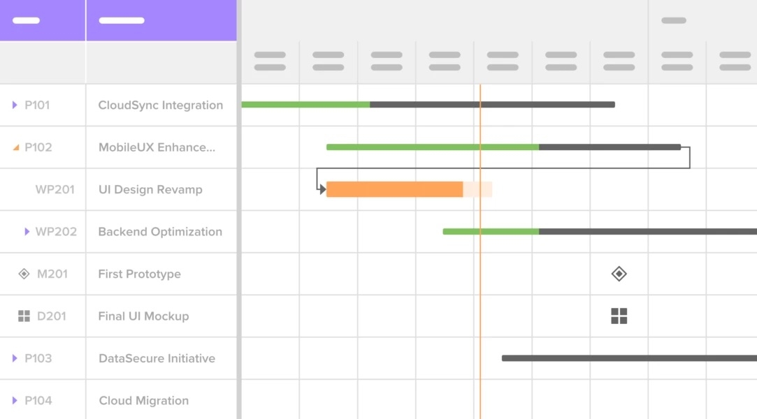 Nutzen Sie Gantt-, Tabellen- oder Kanban-Ansichten für eine präzise Projektplanung. Berücksichtigen Sie Abhängigkeiten, Meilensteine, Zeitpläne und Ressourcenverteilung – alles zentral und übersichtlich.