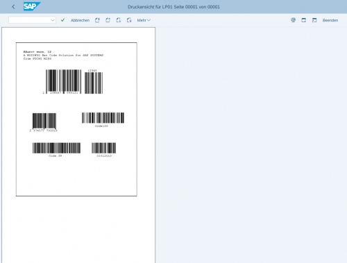 Die Funktionen des Programms erlauben die Ausgabe von Barcodes auf beliebigen Druckern, unabhängig vom verwendeten Gerätetypen und Koppelart. Da die Barcodes als SAP Grafik ausgegeben werden, erscheinen die sie originalgetreu auch in der Vorschau, auf Faxen, in Archiven und sind auch nach Umwandlung von Dokumenten ins PDF-Format sichtbar und lesbar.
