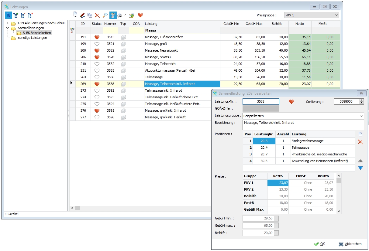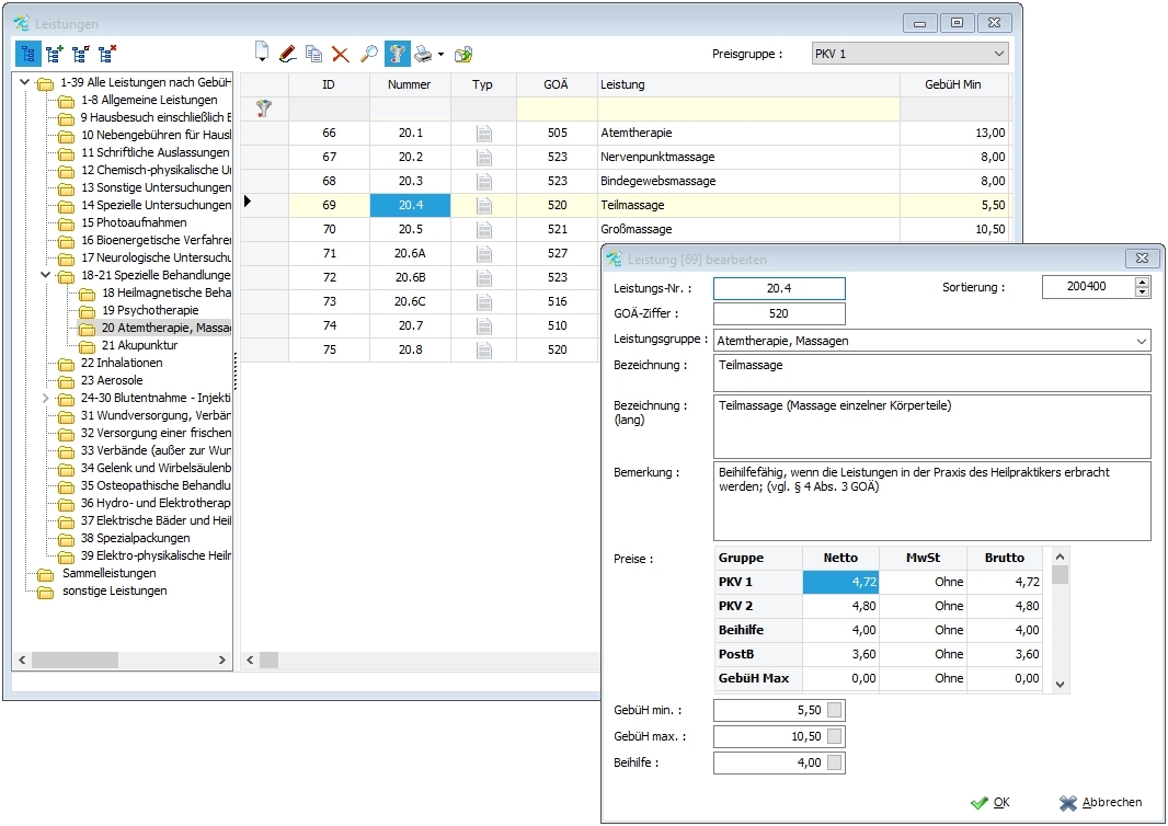 Ja, diese Software wird mehrfach in Osteopathie Praxen und bei sektoralen Heilpraktikern, auch gerade im Bereich Physiotherapie zur Privatliquidation eingesetzt, denn alle Preislisten lassen sich individuell erweitern und anpassen. Alle Leistungen aus der physikalischen Therapie gem. § 125 DGB V können eingetragen werden, auch mit den Sätzen der vdek. Ebenso können Preislisten mit einem Faktor multipliziert und Analogien im Leistungstext ergänzt werden. Der Support ist hierbei gerne behilflich.