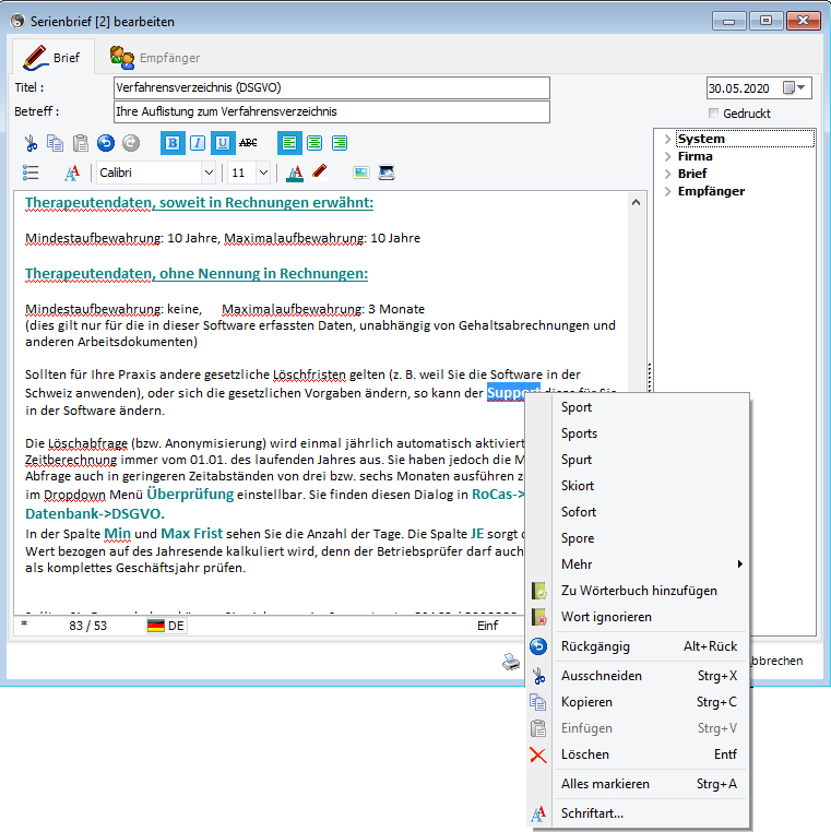 Für den Z3 Export wird ein Standardexport mitgeliefert, der die Diagnosen und Leistungstexte und Leistungsziffern zum jeweiligen Patienten ausblendet. Obwohl auf jeder Rechnung diese Daten enthalten sind, sind wir der Meinung, dass die Patientendaten einem besonderen Schutz unterliegen. Reicht der Patient seine Rechnungen für die Steuererklärung ein, ist er selber Herr seiner Daten. Nicht so, bei er Steuerprüfung eines Heilpraktikers vor Ort. Wir haben den Export so erstellt, dass Sie in der Lage sind, bei jeder Tabelle und jedem Datenbankfeld zu entscheiden, ob es exportiert, oder mit Sonderzeichen gefüllt übergeben wird. Eine einheitliche Regelung gibt es hierfür noch nicht, zumal der Heilpraktiker in der Schweigepflicht leider dem Arzt nicht gleichstellt wurde, aber auch hier sind die gesetzlichen Regelungen widersprüchlich. Siehe §203 (1 StGB) Schweigepflicht und § 102 Abs. 1 Nr. 3c Abgabenordnung. Die Finanzbehörden sind dagegen der Auffassung, dass die Einsichtnahme zulässig ist, soweit sie sich auf die Wiedergabe der finanziellen Beziehungen zwischen Arzt und Patient beschränken. Soweit hingegen aus den Unterlagen Diagnosen und Behandlungsmethoden des Arztes erkennbar sind, sei den Außenprüfern die Einsichtnahme verwehrt, es sei denn, die Unterlagen wurden anonymisiert. Zudem gehören Patientendaten zu den besonderen Arten personenbezogener Daten, die auch durch das Bundesdatenschutzgesetz (BDSG) geschützt sind. Besonders schützenswerte personenbezogene Daten unterliegen einer weit strengeren Regulierung und dürfen nur in den seltensten Fällen gespeichert oder verarbeitet werden. Hierunter fallen Informationen über die Gewerkschaftszugehörigkeit einer Person, deren religiöse, philosophische oder politische Orientierung, ihrer rassischen und ethnischen Herkunft, Daten über ihre physische und psychische Gesundheit, von ihr begangenen Straftaten oder Ordnungswidrigkeiten sowie Angaben zur Sexualität (Artikel 9 DSGVO / §3 Absatz 9 BDSG).