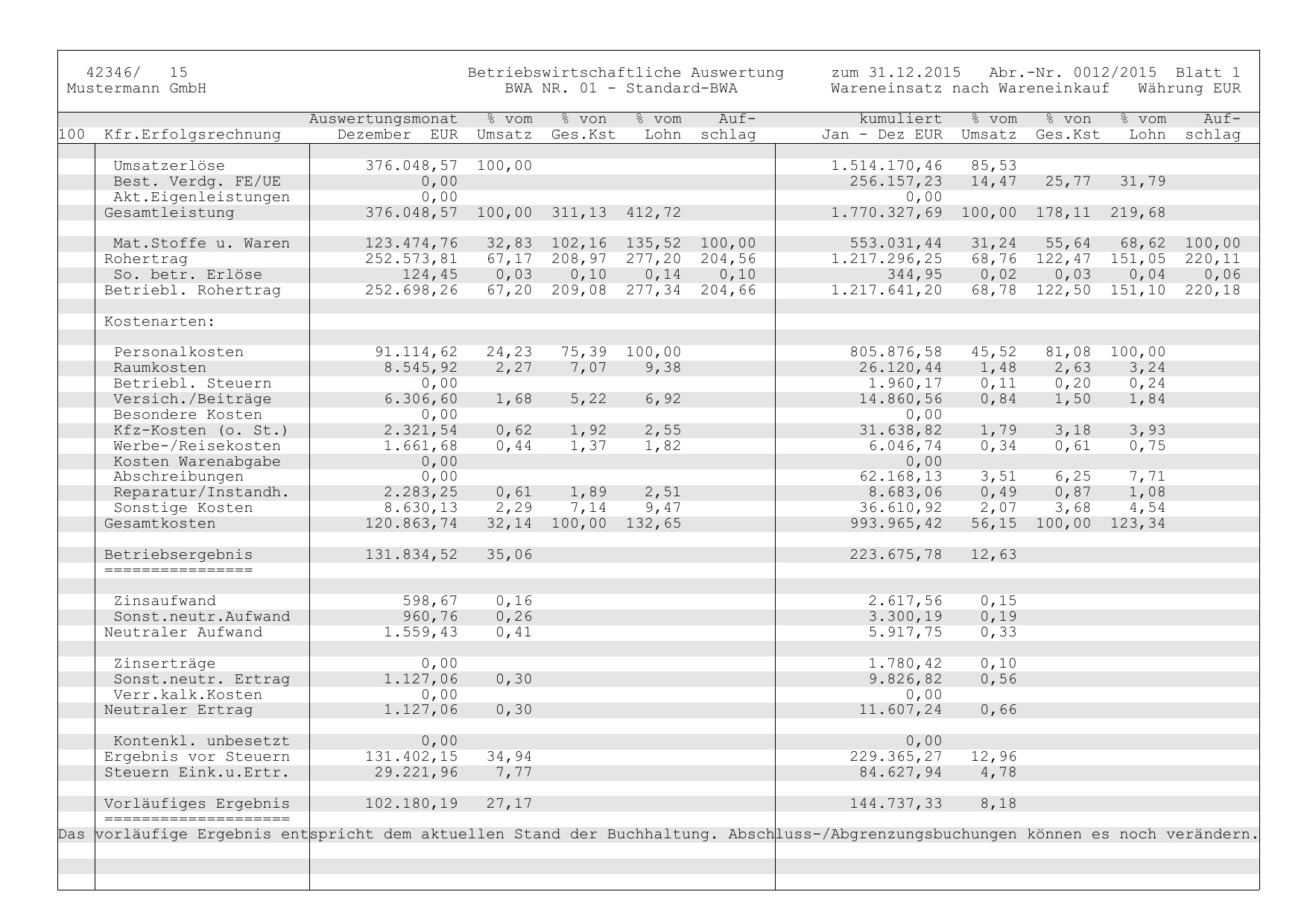 - Betriebswirtschaftlicher Abrechnungsbogen auch als konsolidierter BAB