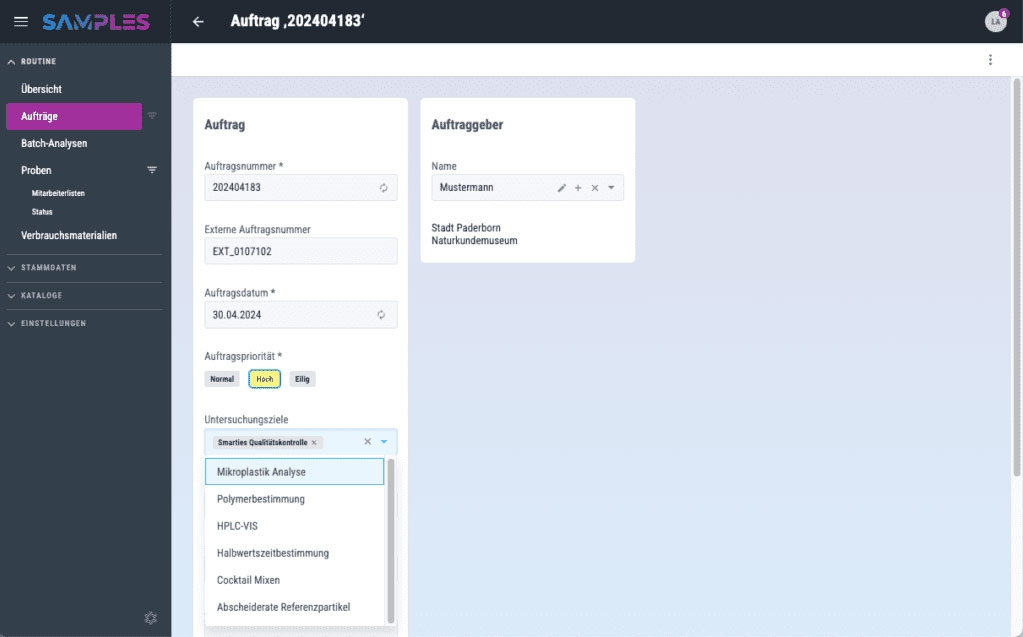 Auftrags- & Probenverwaltung inkl. Serien- und Teilproben