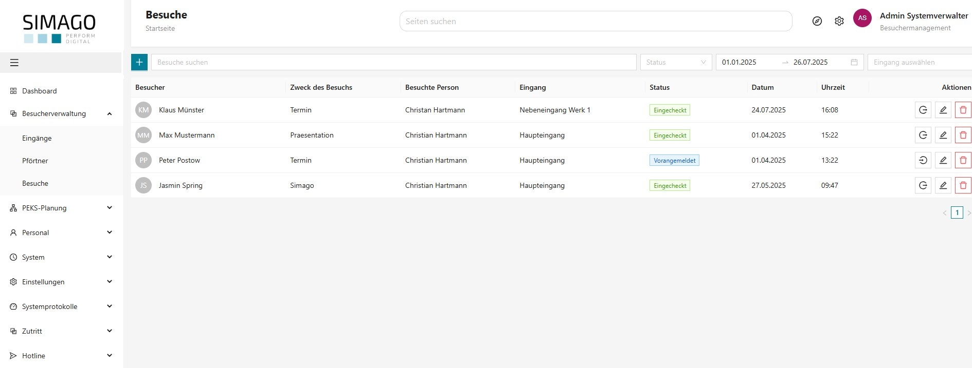 Die Simago® – Besucherverwaltung ist ein browserbasiertes Tool, welches das Besuchermanagement deutlich vereinfacht und effizienter gestaltet. Nutzen Sie die Simago® – Besucherverwaltung für die Verwaltung Ihrer Besucher, aber auch für Fremdmitarbeiter und für die Verwaltung des Lieferverkehrs.