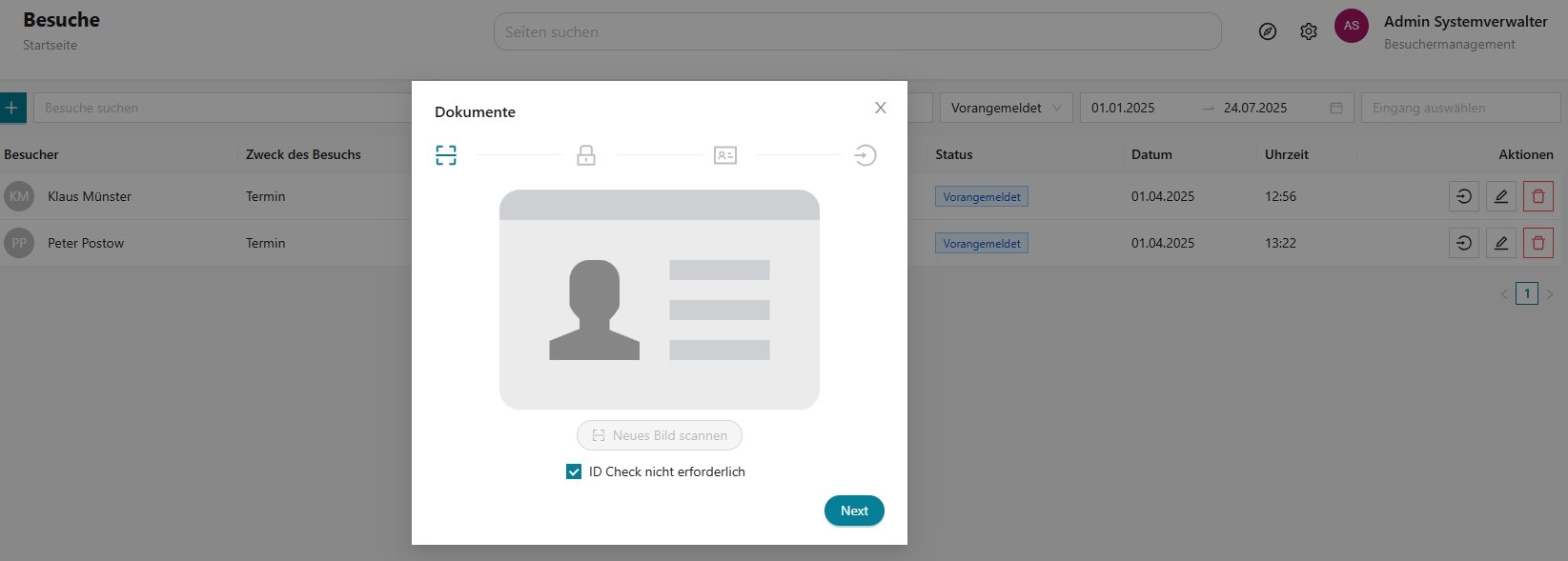 - Registrierung eines Besuchers, Fremdmitarbeiters, PKW oder LKW