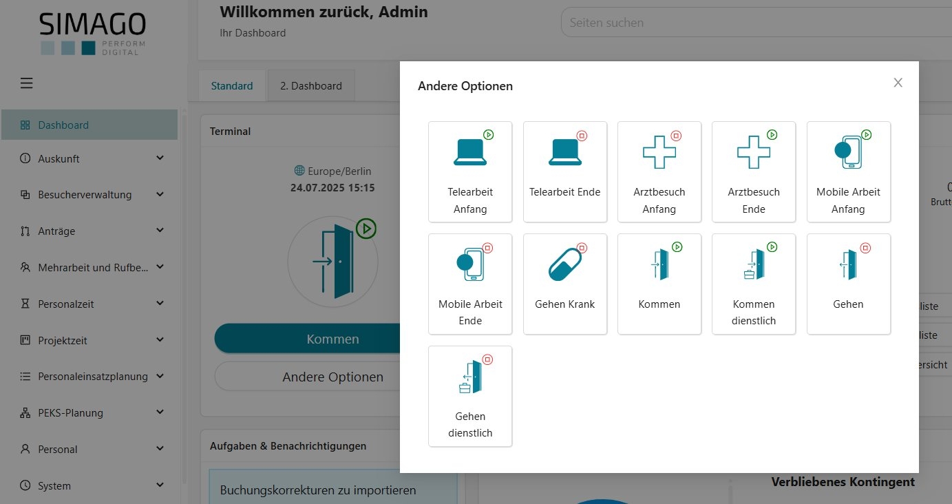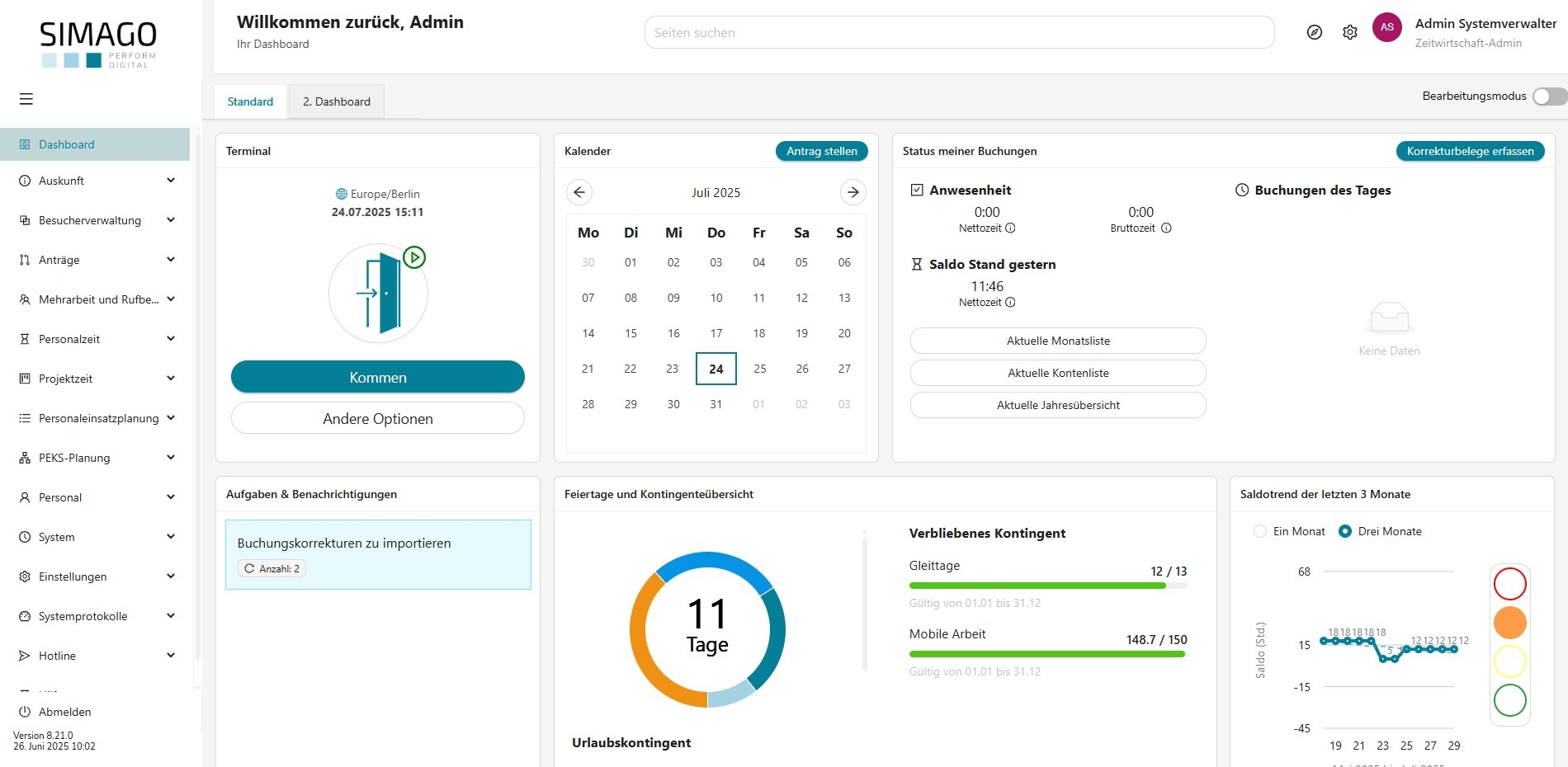 - Individuelles, personalisierbares Dashboard mit virtuelles Terminal und Employee-Self-Service