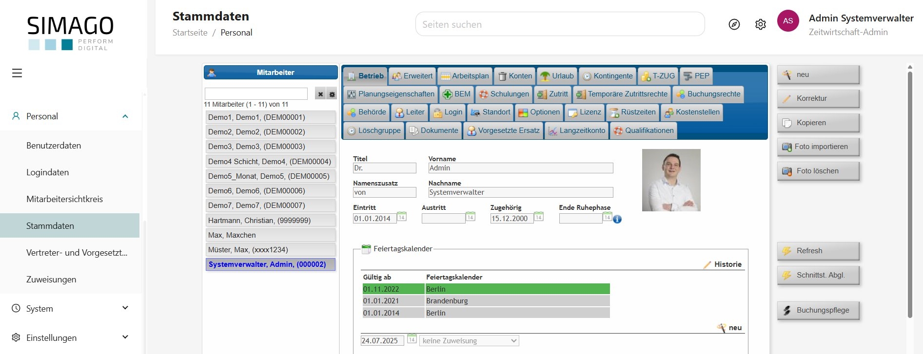 - Eingabe- und Pflege von Feiertagen, Sondertagen, Brückentagen, Berücksichtigung regionaler Feiertage