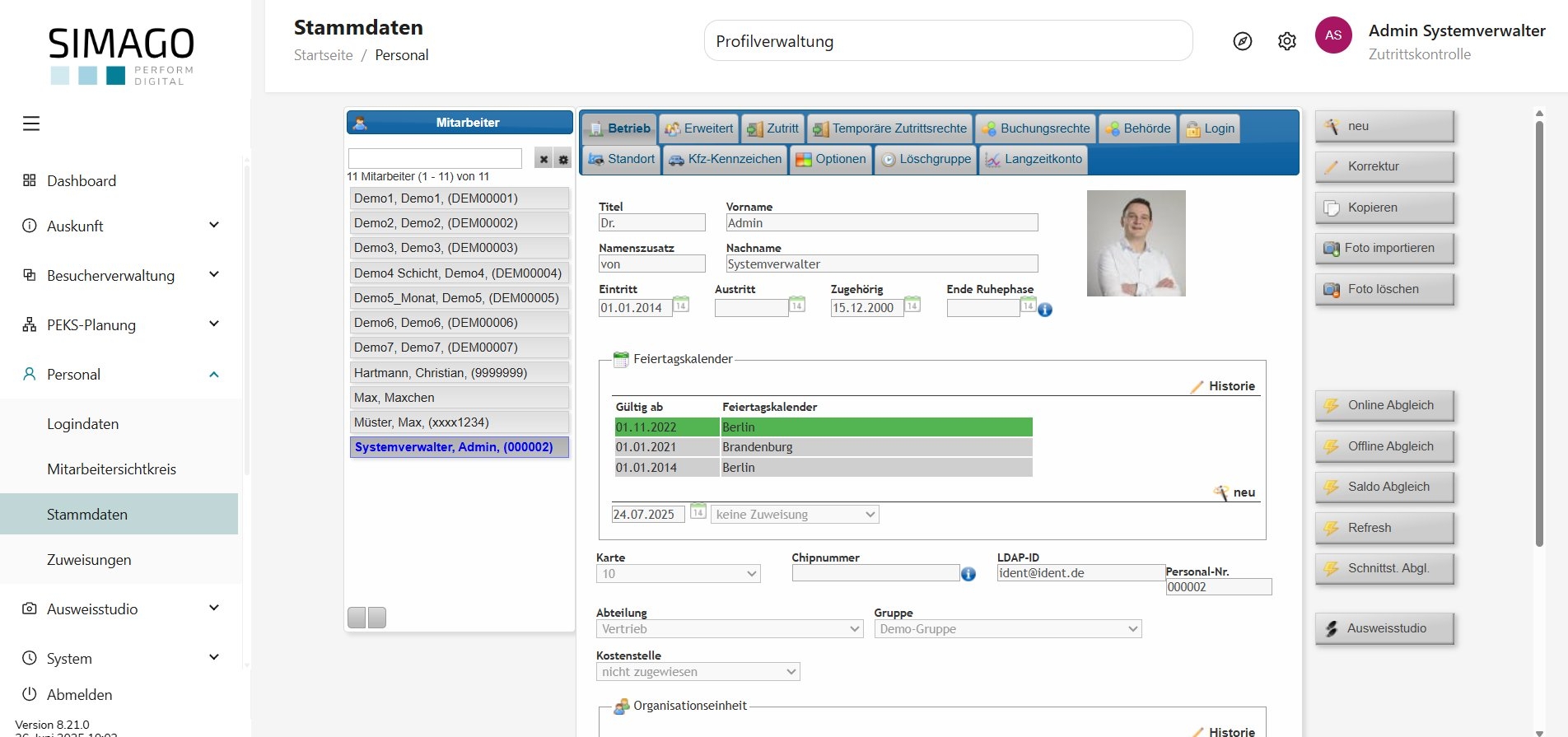 Die Simago® access – Zutrittskontrolle ist modular aufgebaut. Sie lässt sich jederzeit um weitere Features wie beispielsweise Biometrik, Schlüsselkastenmanagement, temporäre Rechte, etc.) erweitern. Die Software umfasst zudem Workflows mit dem die Beantragung von Zutrittsberechtigungen und neuen Ausweisen, effizient abgebildet werden können.