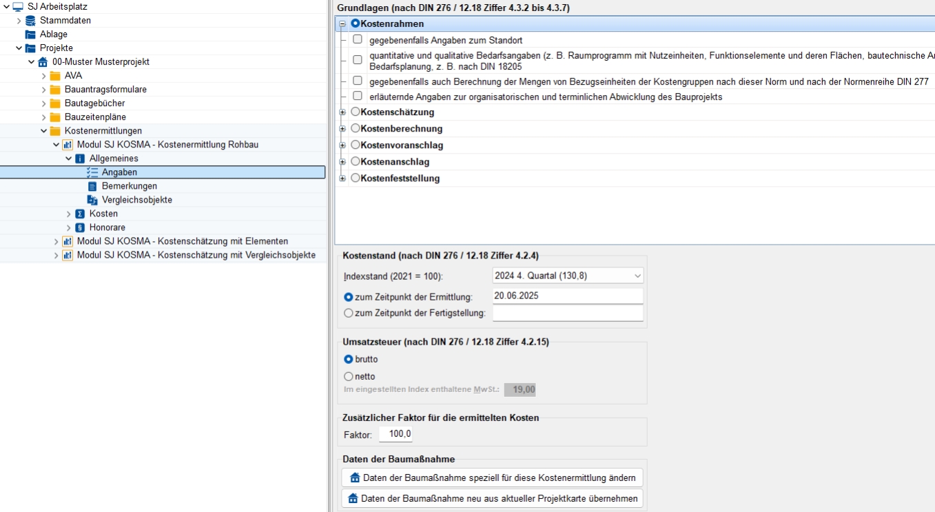 Mit SJ KOSMA erstellen Sie die verschiedenen Stufen einer Kostenermittlung.