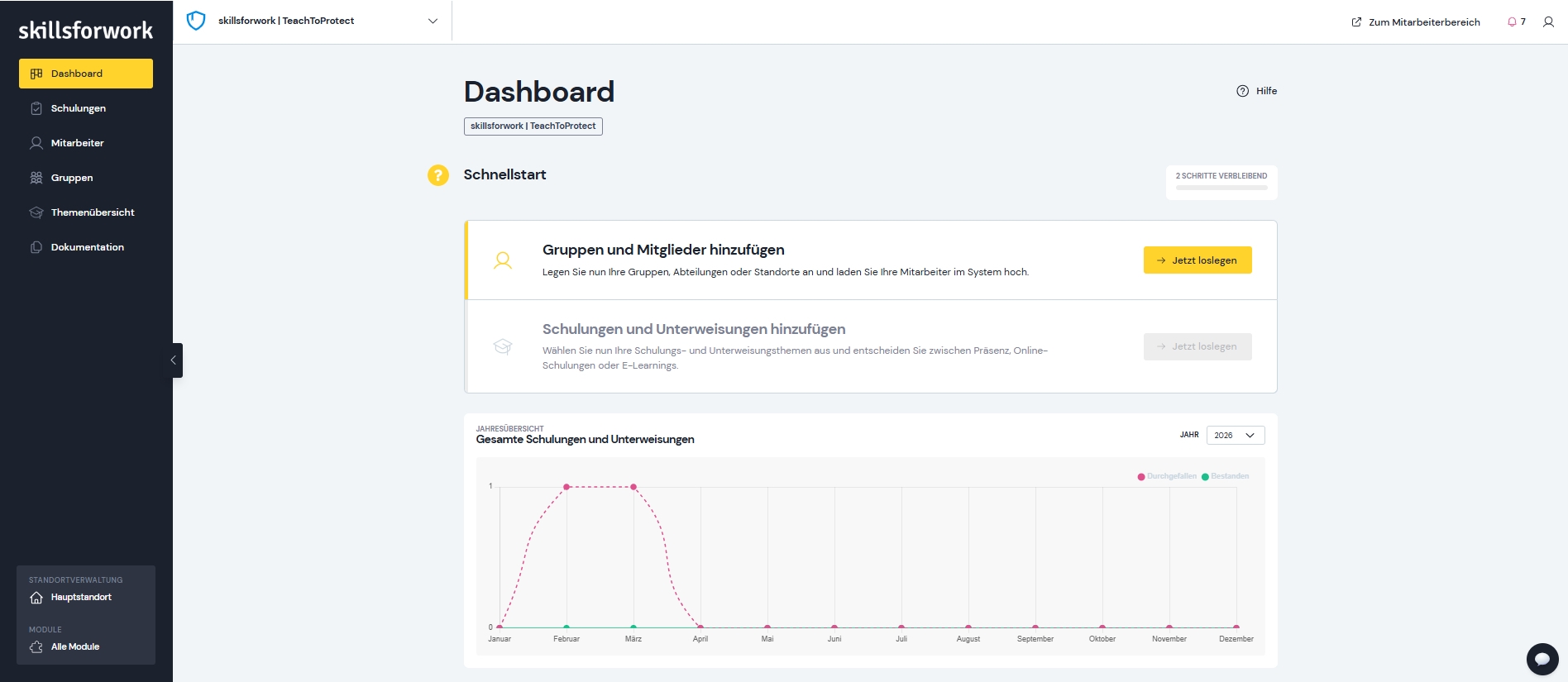 - Einfache Mitarbeitenden- und Gruppenverwaltung mit automatischen Erinnerungen an fällige Schulungen.