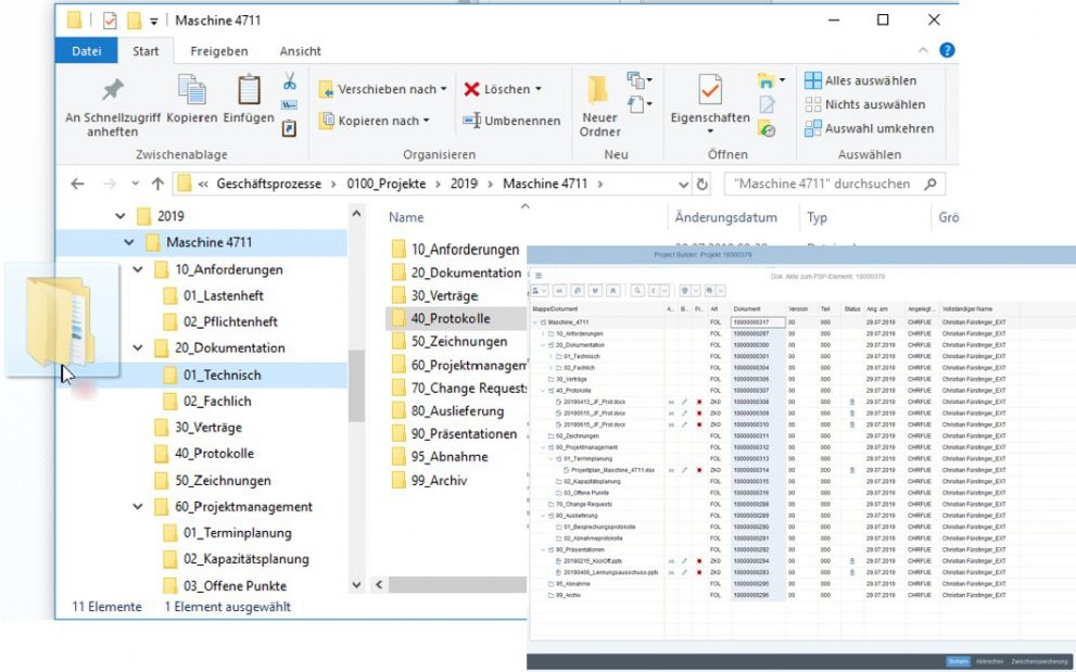 Ja, Sie können Dokumente strukturiert in Akten und Ordnern organisieren und direkt mit SAP-Objekten verknüpfen. So lassen sich vollständige Vorgangs- oder Projektakten als elektronische Akte abbilden, die bereichsübergreifend genutzt werden können.