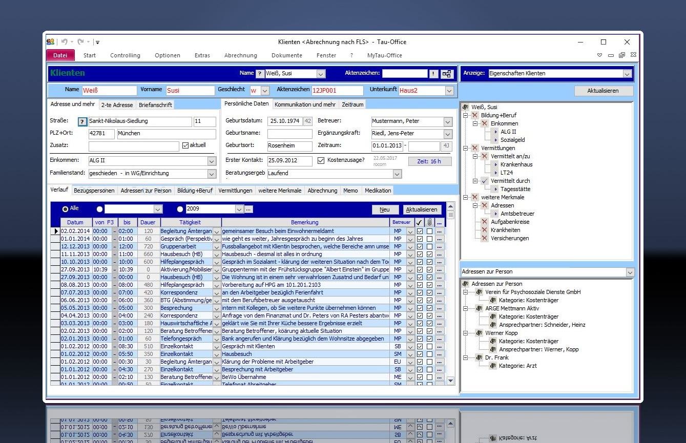 Unsere Software bietet eine umfassende Unterstützung für Ihre Betreuungsarbeit, insbesondere bei der Integration von Personen nach Haftentlassung. Durch die einfache Bedienbarkeit und individuelle Anpassungsmöglichkeiten ermöglicht sie eine effiziente Verwaltung von Personendaten, Dokumentationen von Fachleistungsstunden und Abrechnungen.