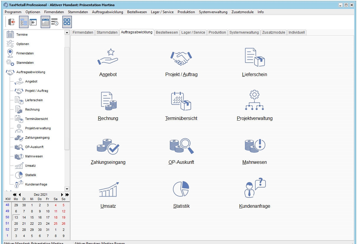 TaxMetall StartUp wurde speziell für Betriebe entwickelt, in denen Mitarbeitende mehrere Rollen übernehmen – etwa in produzierenden Unternehmen wie in der Lohnfertigung oder Engineering-Unternehmen. Die Lösung bildet zentrale Geschäftsprozesse kompakt ab und erleichtert den Einstieg ins digitale Arbeiten.