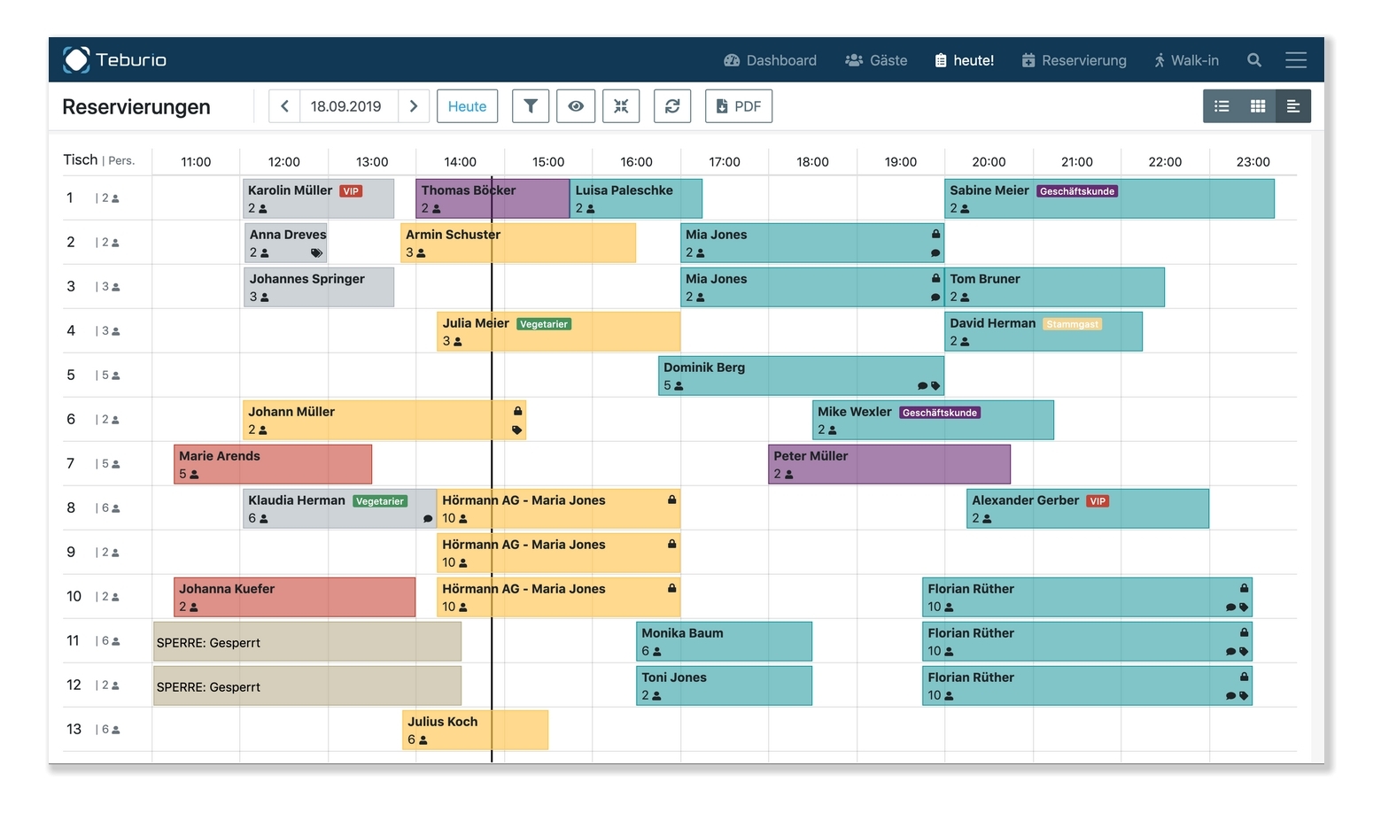 Mit intelligenten Algorithmen und automatisierten Prozessen unterstützt die Software Sie bei der Optimierung der Tischbelegung. Durch die Online-Reservierungsmöglichkeit verlieren Sie keinen Gast mehr, weil Sie vielleicht im entscheidenden Moment nicht erreichbar waren. Teburio liefert alle die Features, um Ihren Gästen den perfekten Service zu bieten.