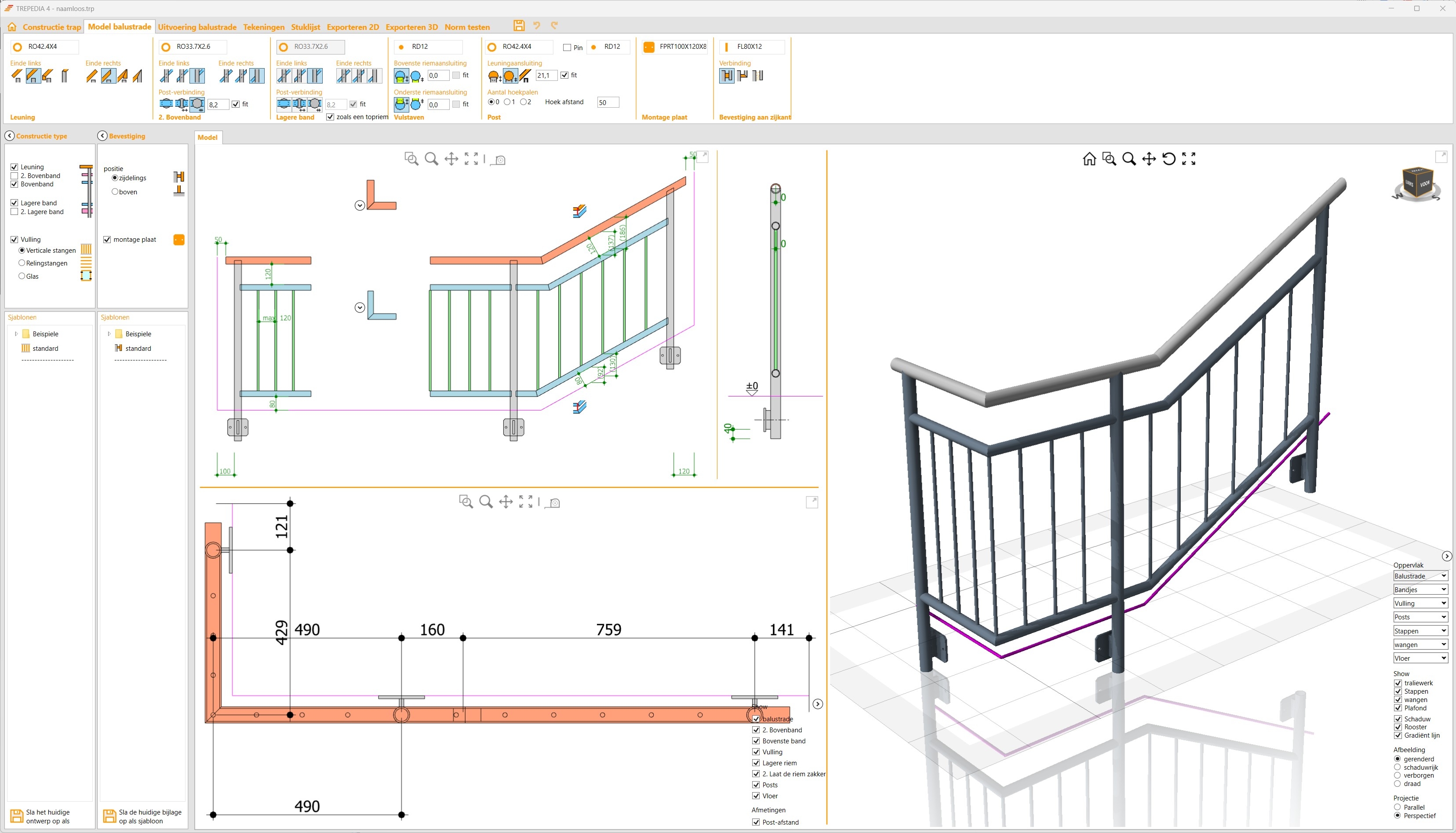 - Für Geländer können eigene Baumuster abgespeichert und wiederverwendet werden.