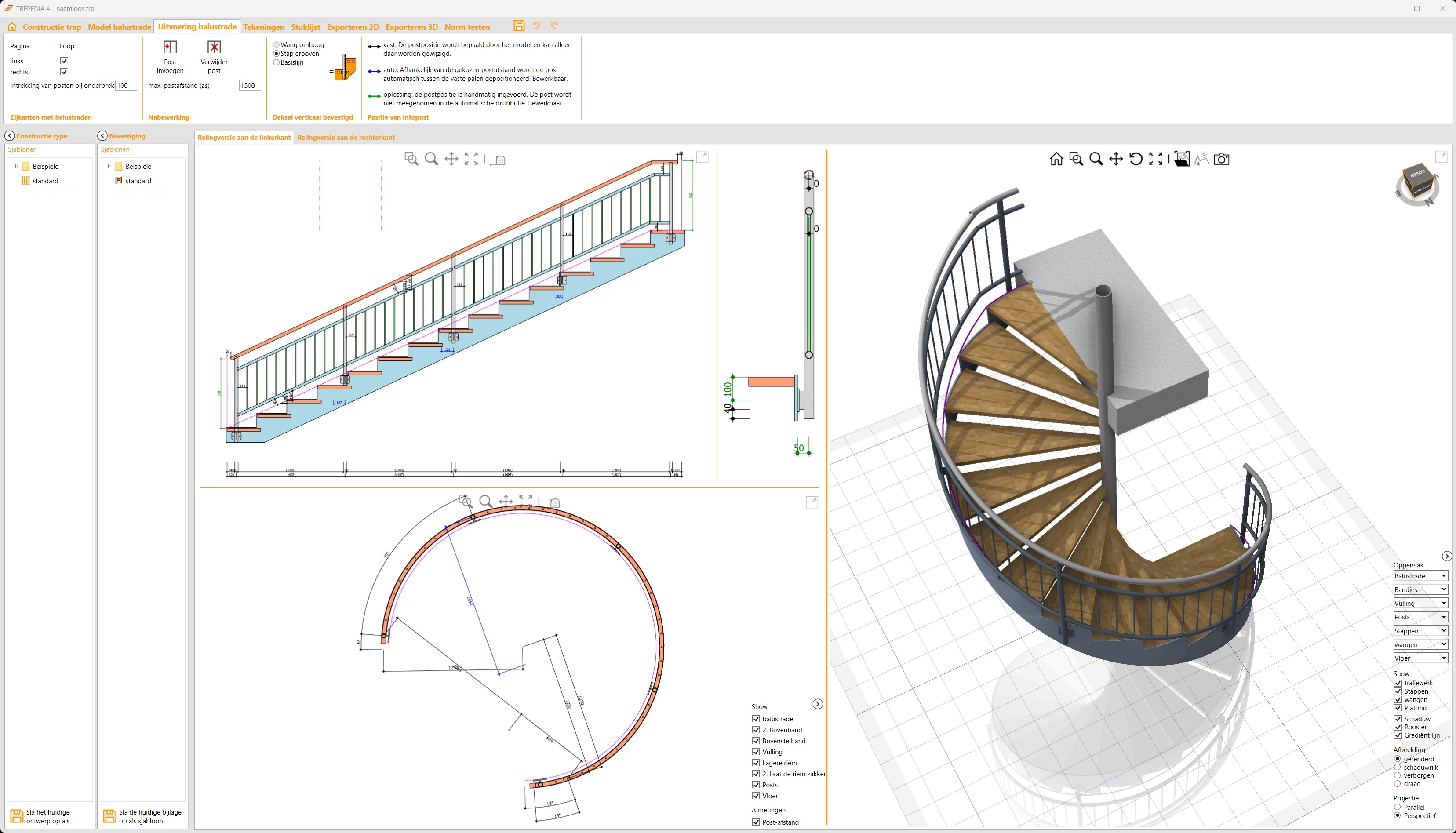 Sämtliche Einzelheiten, die häufig in der tagtäglichen Arbeit auftauchen, wie schräger An- / Austritt, feste Podesthöhen, unterschiedliche Laufbreiten etc. werden abgebildet.