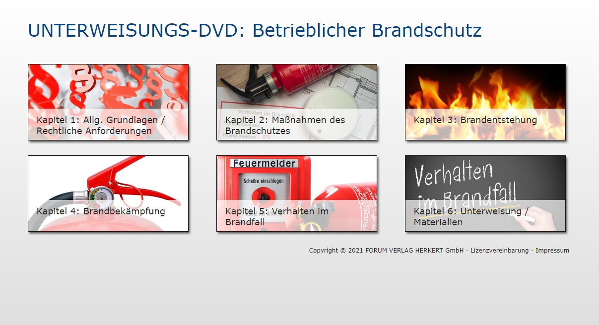 Die Forum Verlag Herkert GmbH hat mit der Unterweisungs-DVD Brandschutz für das Gesundheitswesen aus der PRAXIS-DVD-Reihe eine Software entwickelt und bereitgestellt, mit welcher Sie Ihren Angestellten nicht nur die jährliche Pflichtunterweisung vollumfänglich zugutekommen lassen können, sondern sich selbst viel Arbeit erleichtern können. Denn eine solche Unterweisung nach § 10 Arbeitsschutzgesetz, § 4 Arbeitsstättenverordnung und der DGUV Vorschrift 1 braucht einiges an Vorbereitung Ihrerseits. Zudem muss ein passender Termin gefunden, eventuelle Nachholungs- oder Ausweichtermine festgelegt und die Brandschutzunterweisung korrekt durchgeführt werden. Das ist zeitaufwendig. Setzen Sie stattdessen auf die Unterweisungs-DVD Brandschutz für das Gesundheitswesen und investieren Sie wertvolle Vorbereitungszeit, die Sie damit einsparen lieber in Ihre Patienten und Kunden.