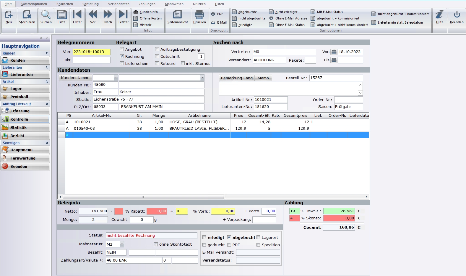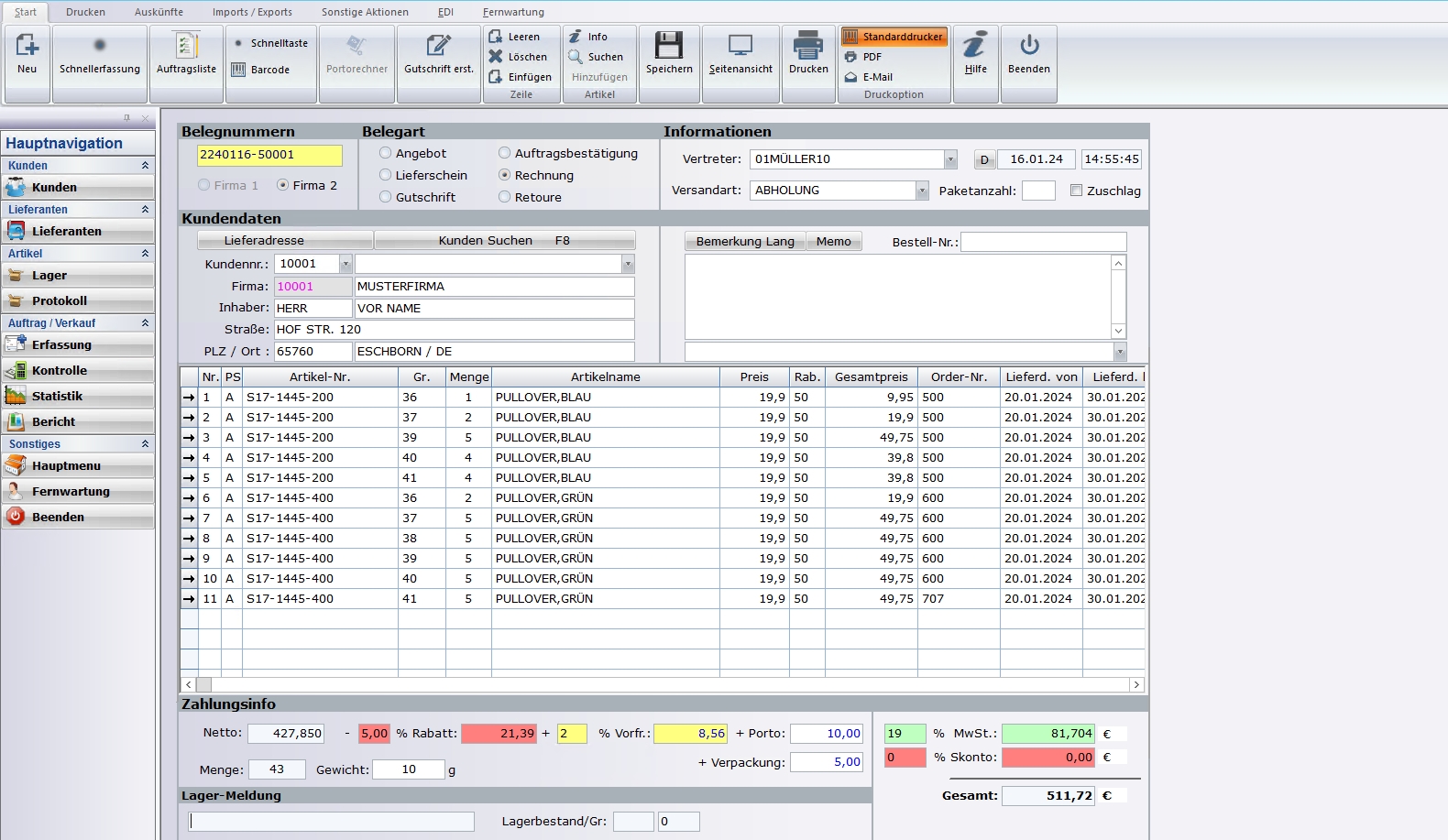 Mehr Übersicht in der Auftrags- und Verkaufsverwaltung! Vom Angebot über Auftrag und Lieferschein bis hin zur Gutschrift, den Retouren und der Offene - Posten Verwaltung sowie Statistiken und der Vertreterabrechnung ist alles an Funktionen verfügbar.