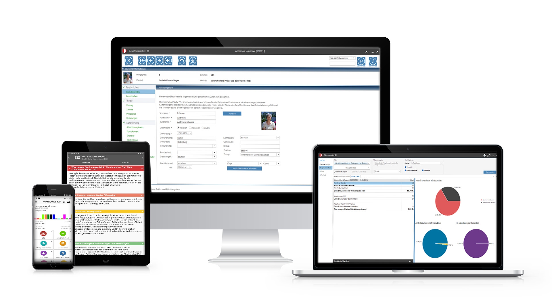 Komda® Pflegedokumentation dient zur Dokumentation der Pflege in der ambulanten, stationären und teilstationären Pflege unter Berücksichtigung individueller Anforderungen und Vorgaben wie z. B. dem Pflegemodell Krohwinkel, Strukturmodell (SIS) u.a., Skalen. Formulargestaltung und Medikamentenverwaltung mit Bestellung und Bestandsführung komplettieren das Programm. Anstehende Evaluierungen werden zur Auswertung angezeigt (Wiedervorlage). Zur leichten Erlernung und Bedienung können alle Eintragungen zentral in der Bewohnerakte (nur ein Programm) vorgenommen werden.