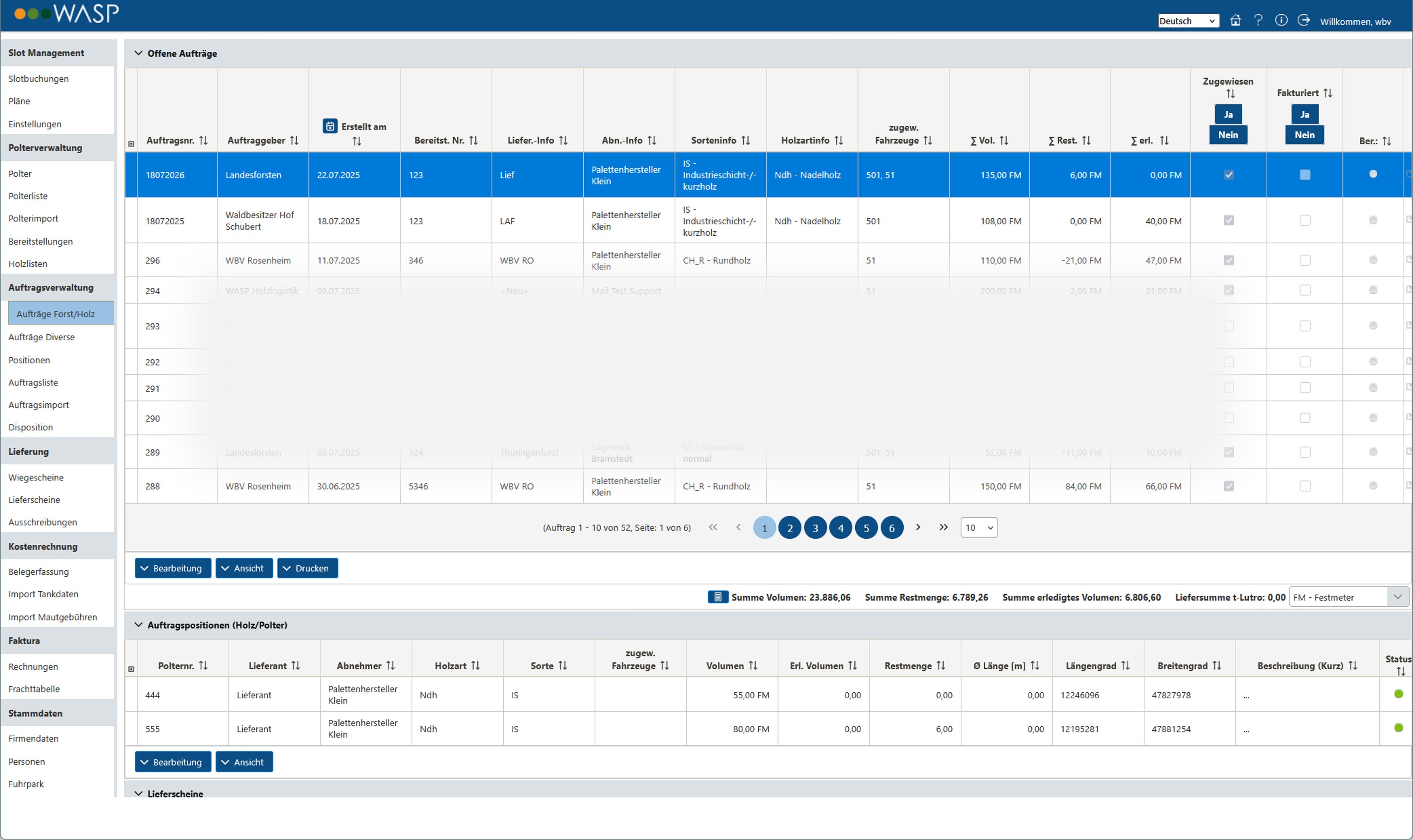 Die WASP-Holzlogistikplattform vernetzt den gesamten Prozess der Holzbeschaffung – von der Waldfläche bis zur Werkübernahme – nahtlos und digital. Mit Hilfe modernster Technologien und benutzerfreundlicher mobiler Anwendungen ermöglicht das System eine effiziente, transparente und durchgängig digitalisierte Holzbeschaffung.