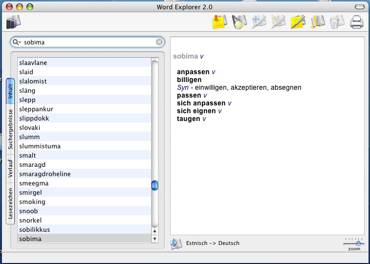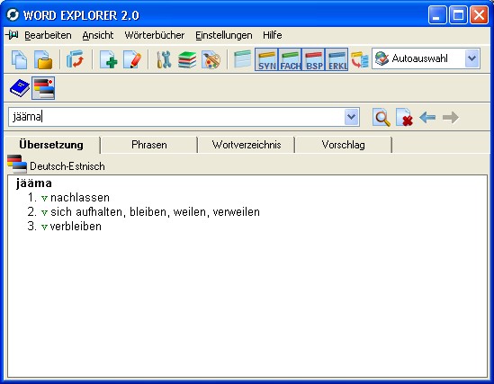 Hier ein Screenshot-Beispiel zu Word Explorer 2.0 Pro Estnisch-Deutsch, Deutsch-Estnisch aus der Reihe Word Explorer: