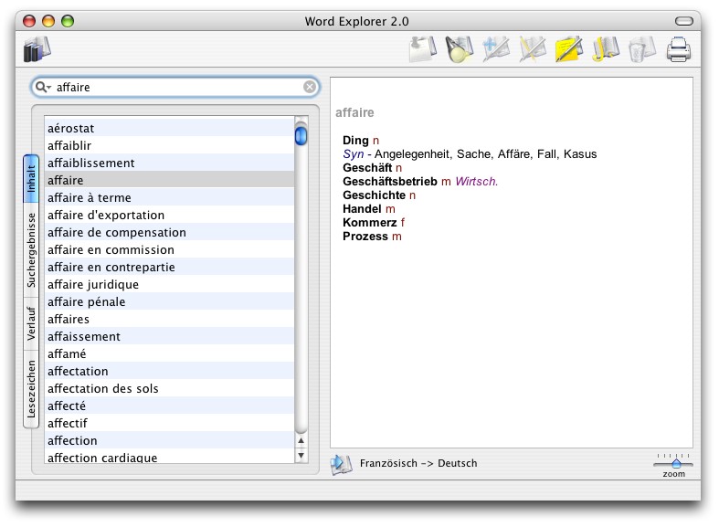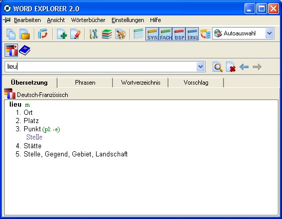 Hier ein Screenshot-Beispiel zu Word Explorer 2.0 Pro Französisch-Deutsch, Deutsch-Französisch aus der Reihe Word Explorer: