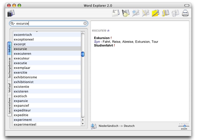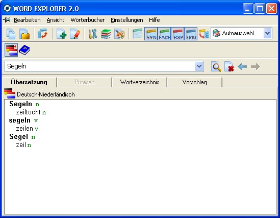 Hier ein Screenshot-Beispiel zu Word Explorer 2.0 Pro Niederländisch-Deutsch, Deutsch-Niederländisch aus der Reihe Word Explorer:
