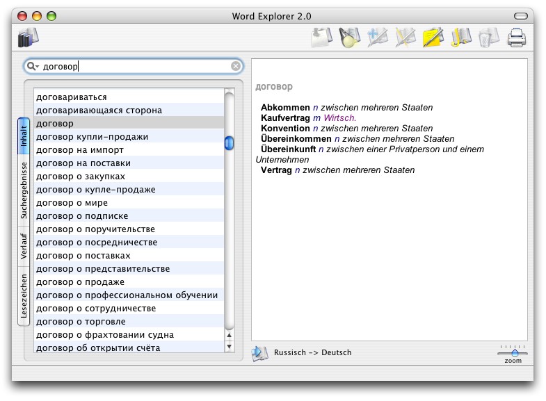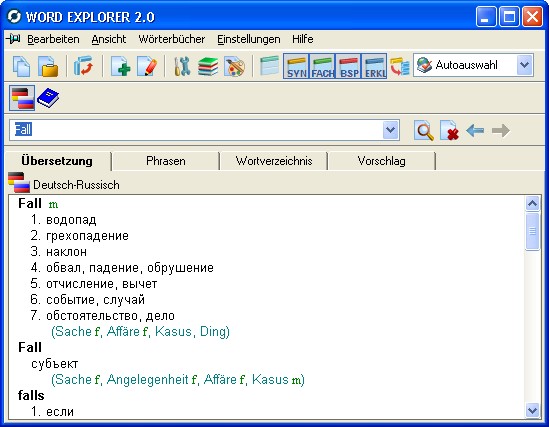 Hier ein Screenshot-Beispiel zu Word Explorer 2.0 Pro Russisch-Deutsch, Deutsch-Russisch aus der Reihe Word Explorer: