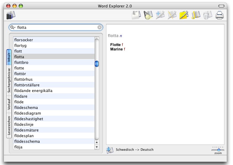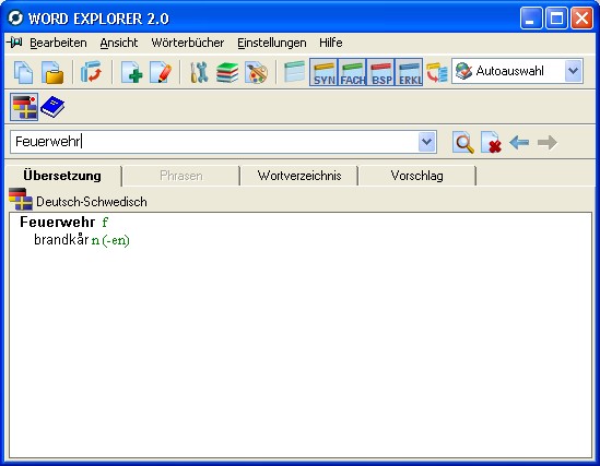 Hier ein Screenshot-Beispiel zu Word Explorer 2.0 Pro Schwedisch-Deutsch, Deutsch-Schwedisch aus der Reihe Word Explorer: