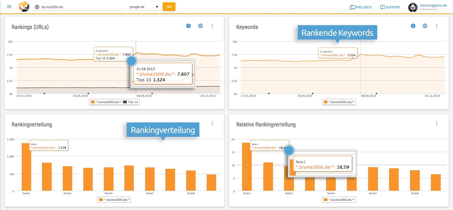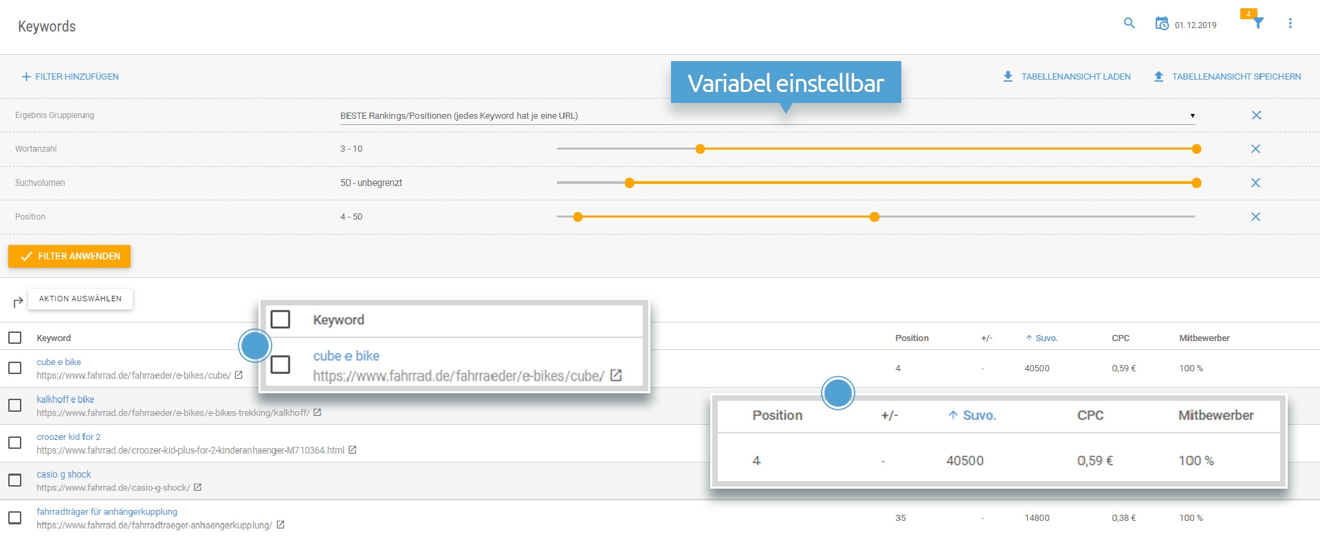 Keyword-Monitoring: Überwachen Sie die Performance Ihrer wichtigsten Suchbegriffe auf täglicher Basis.